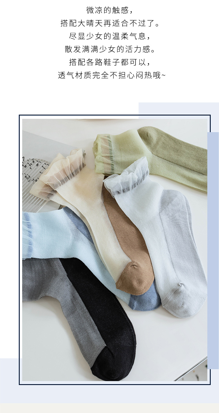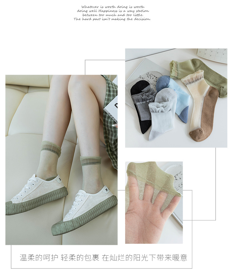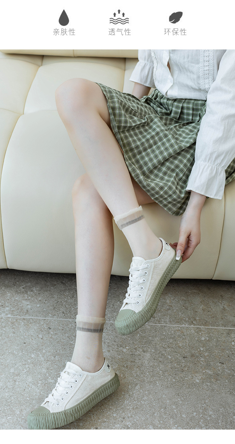 Laced Socks 어린이 여름 울트라 얇은 통기성 일본-한국 양말 수평 스티커 실크 스타킹 면 바닥 땀 흡수 트렌디 인터넷 Celebant Pile Stocking