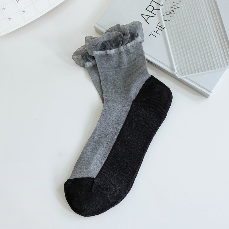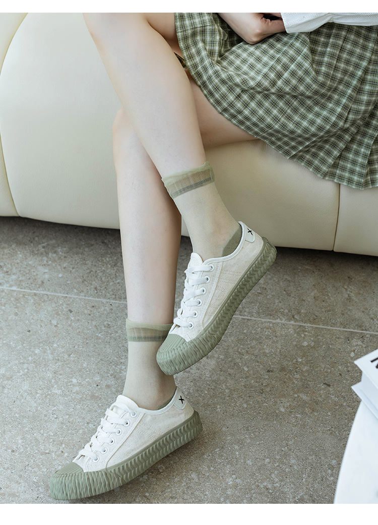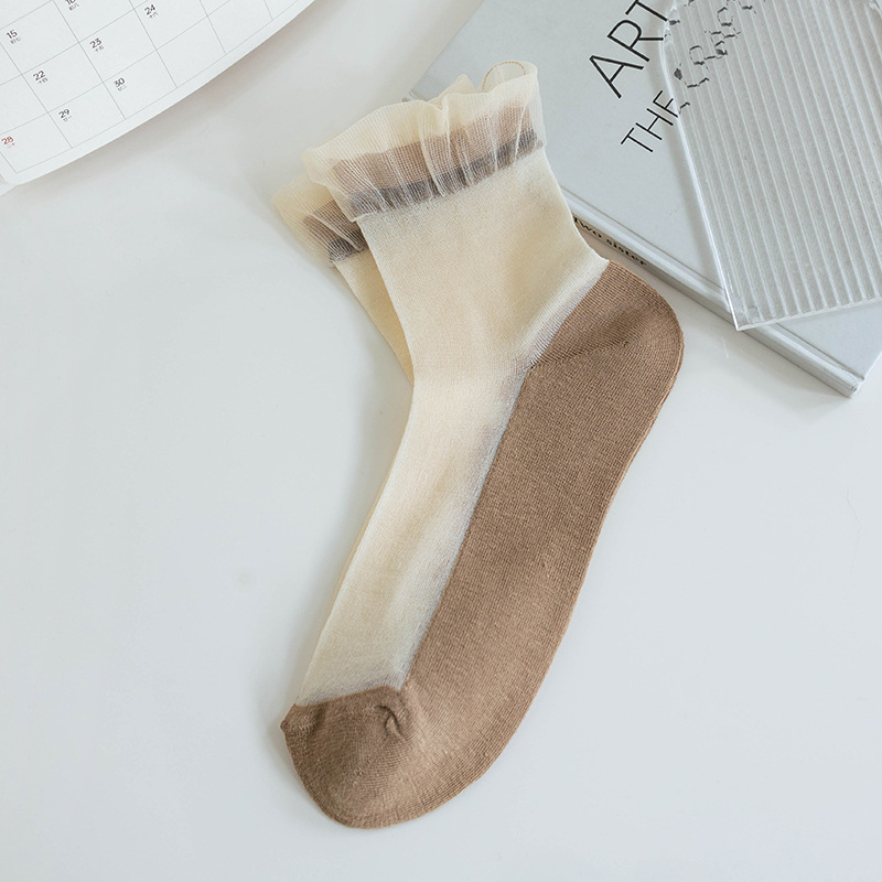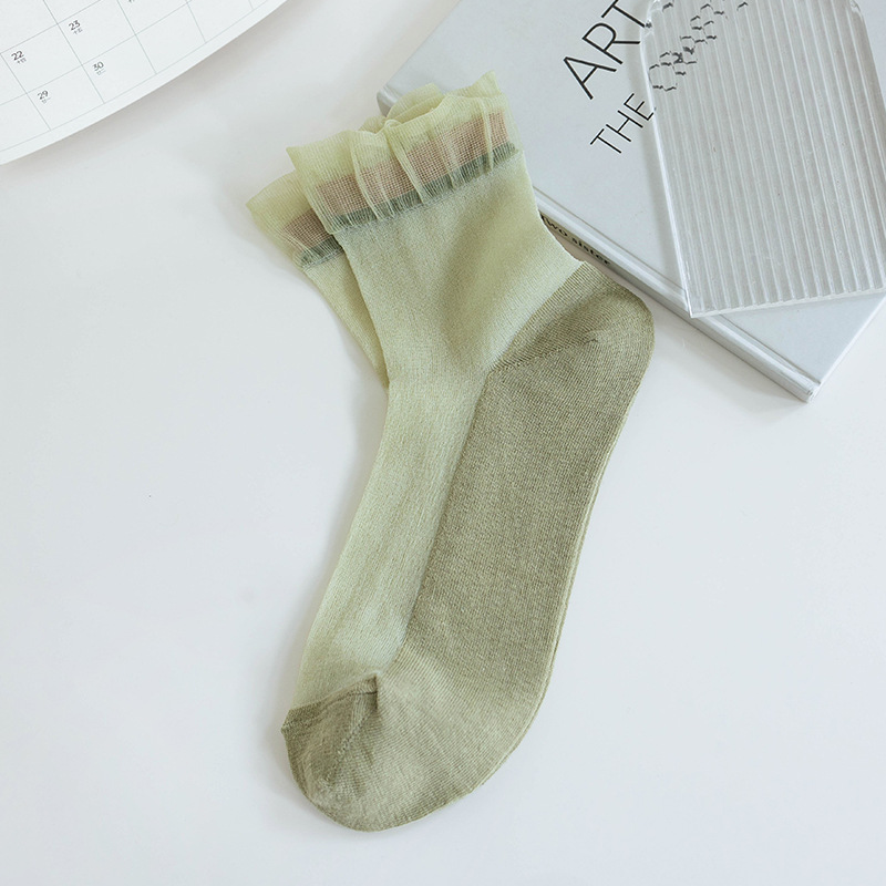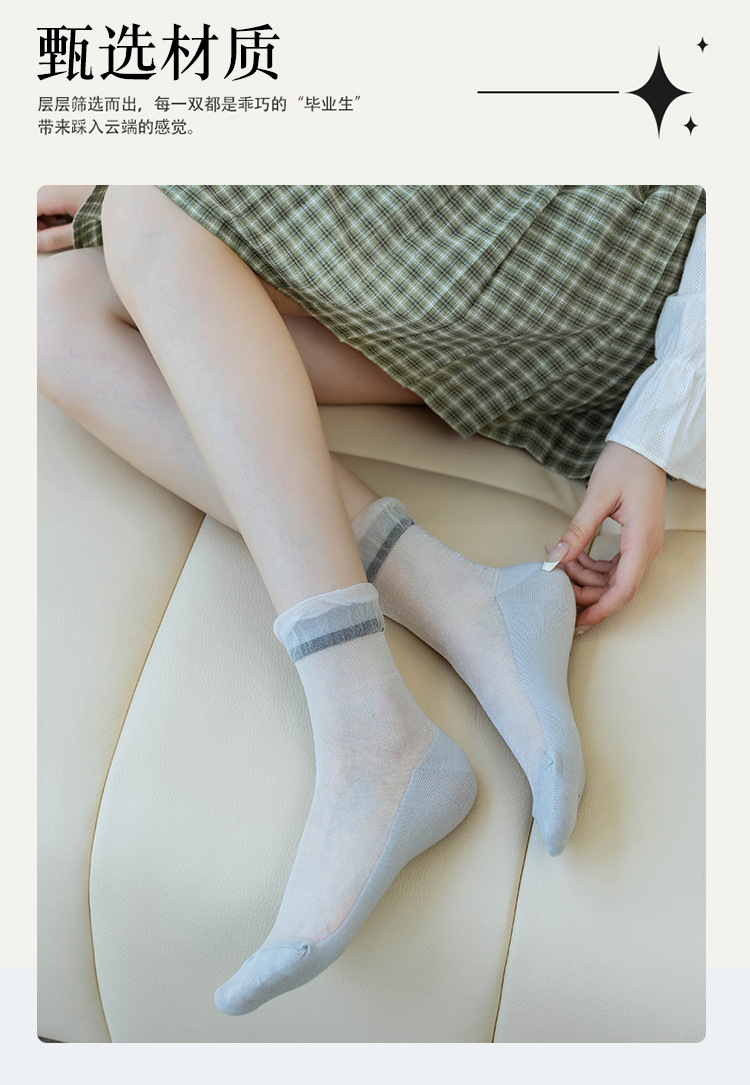 Laced Socks 어린이 여름 울트라 얇은 통기성 일본-한국 양말 수평 스티커 실크 스타킹 면 바닥 땀 흡수 트렌디 인터넷 Celebant Pile Stocking