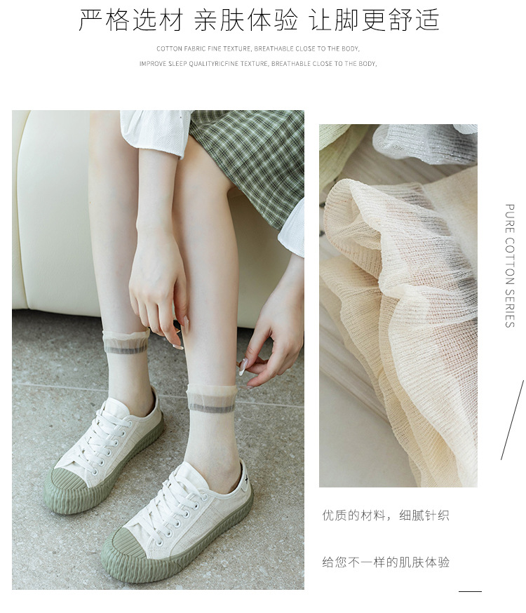 Laced Socks 어린이 여름 울트라 얇은 통기성 일본-한국 양말 수평 스티커 실크 스타킹 면 바닥 땀 흡수 트렌디 인터넷 Celebant Pile Stocking스토어 가기