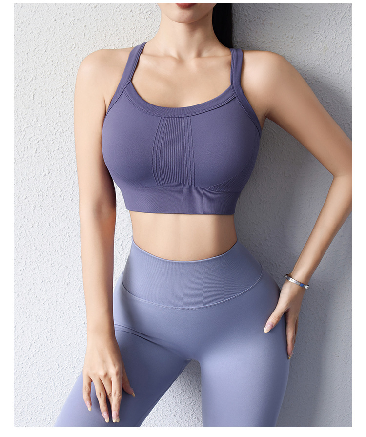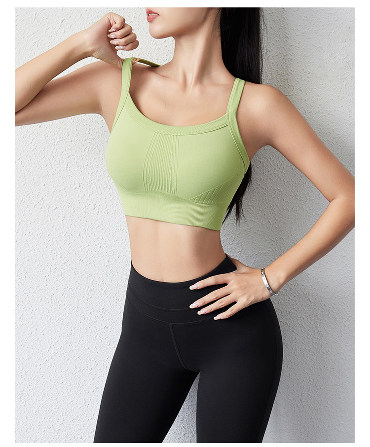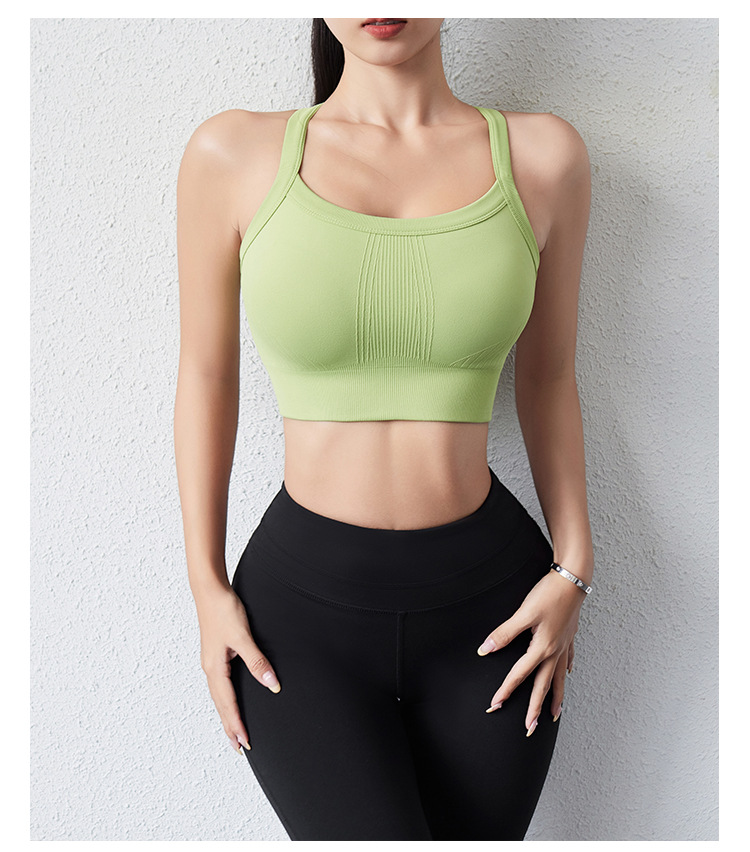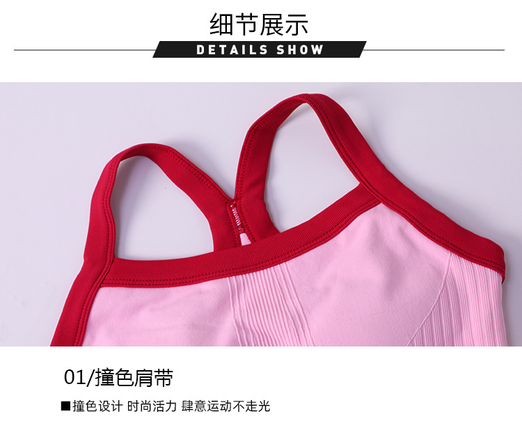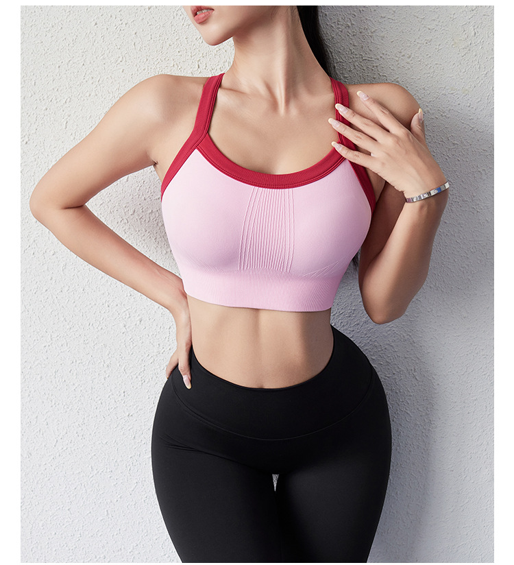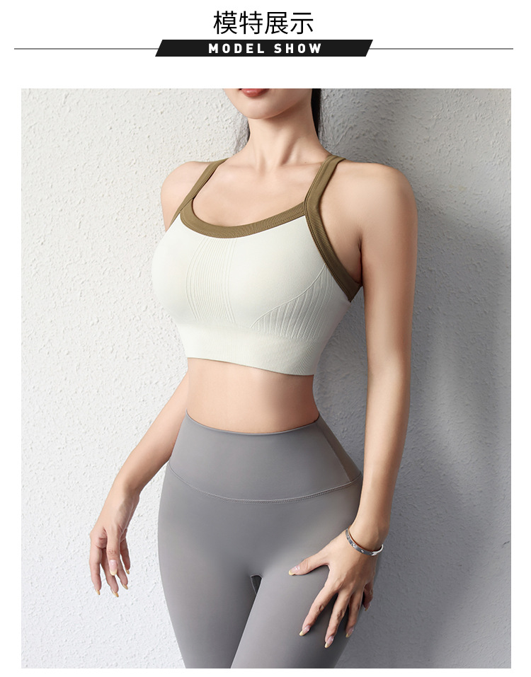 명암 컬러 원활한 원피스 컵 컬러 매칭 스포츠 브라 충격 방지 중간 강도 요가 피트니스 훈련 필라테스 조끼 여성