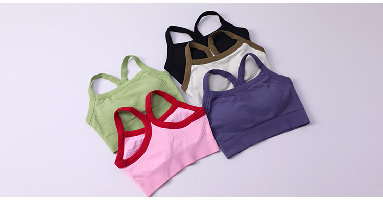 명암 컬러 원활한 원피스 컵 컬러 매칭 스포츠 브라 충격 방지 중간 강도 요가 피트니스 훈련 필라테스 조끼 여성스토어 가기