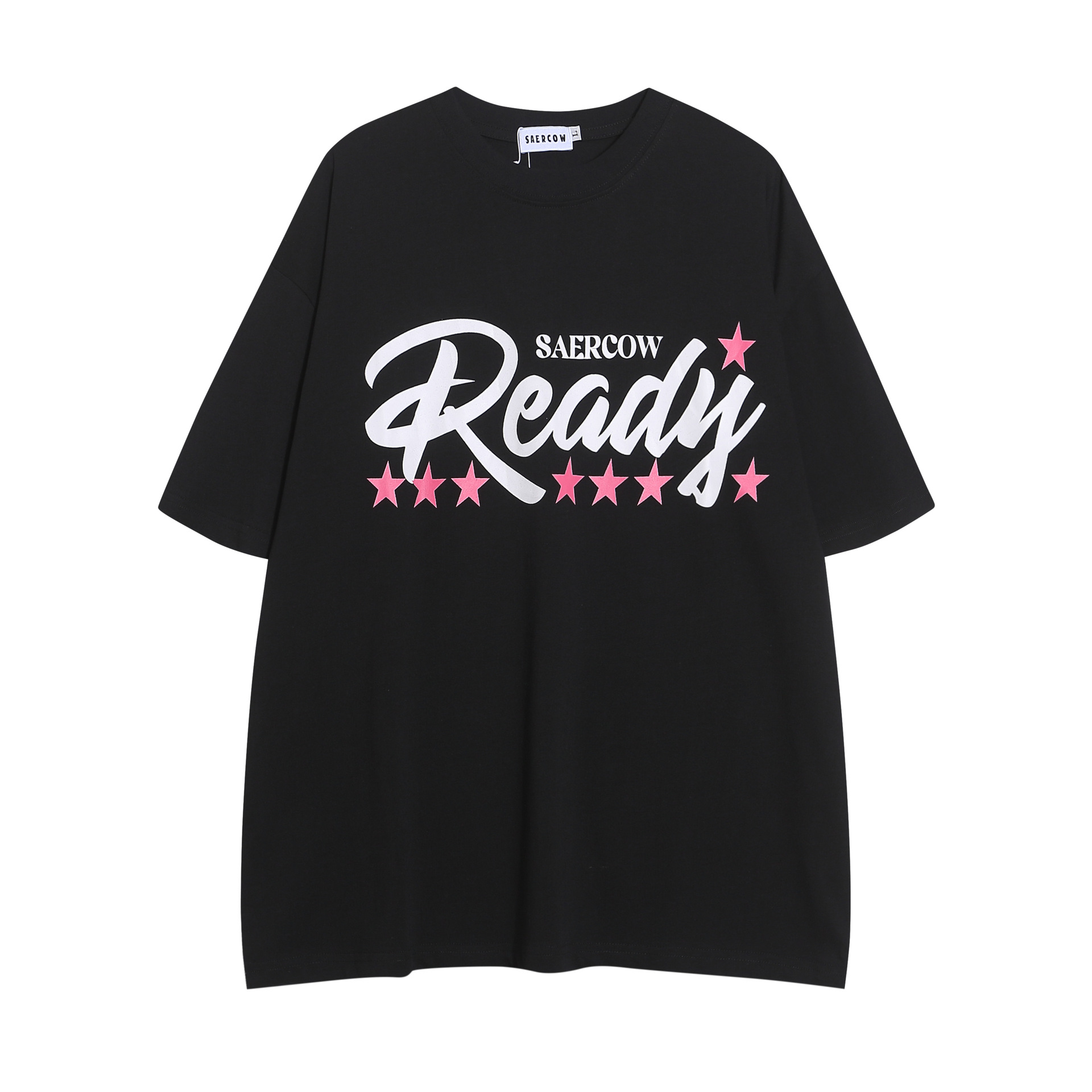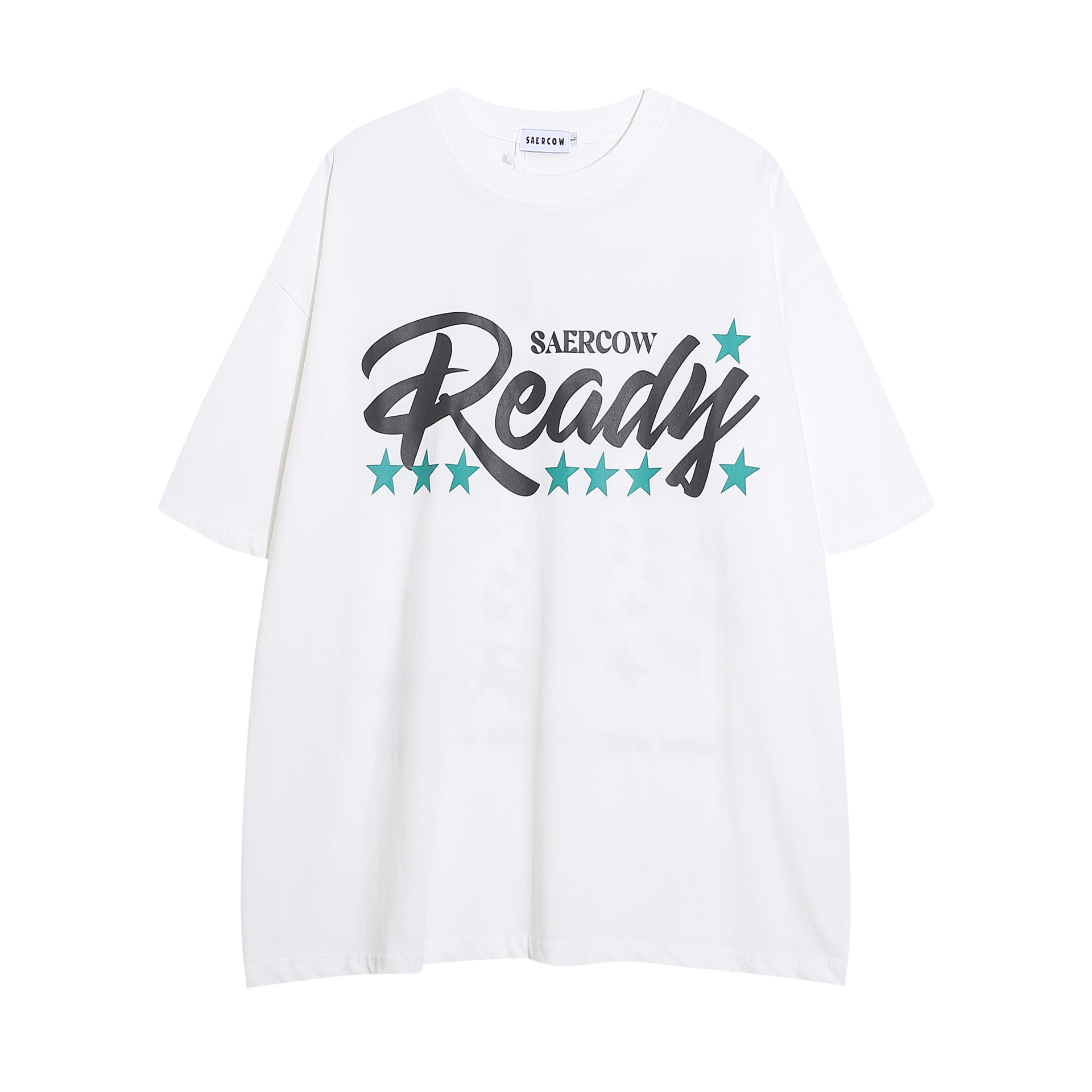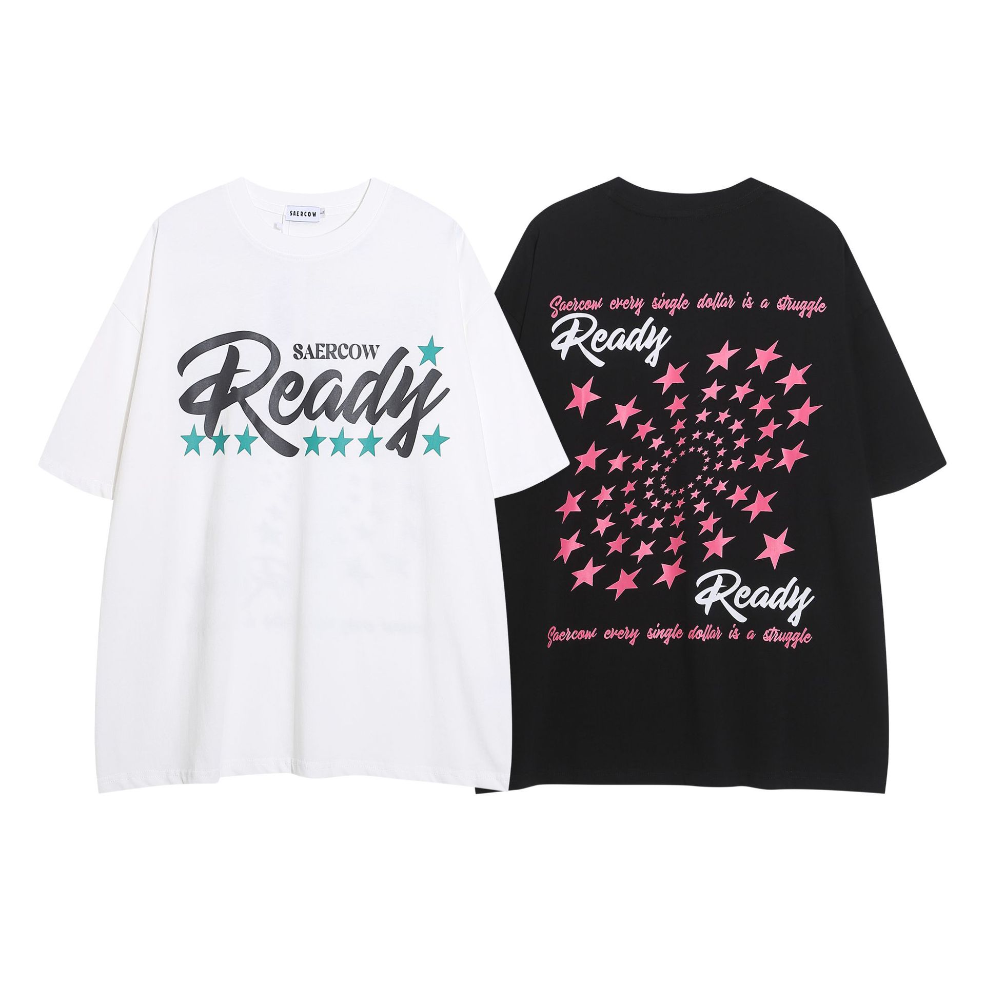 미국 스타일의 트렌디 한 브랜드 인스 타 그램 레터 스타 인쇄 짧은 T-반 슬리브 탑 남성과 여성을위한 거리 느슨한 짧은 소매 티셔츠 연인스토어 가기