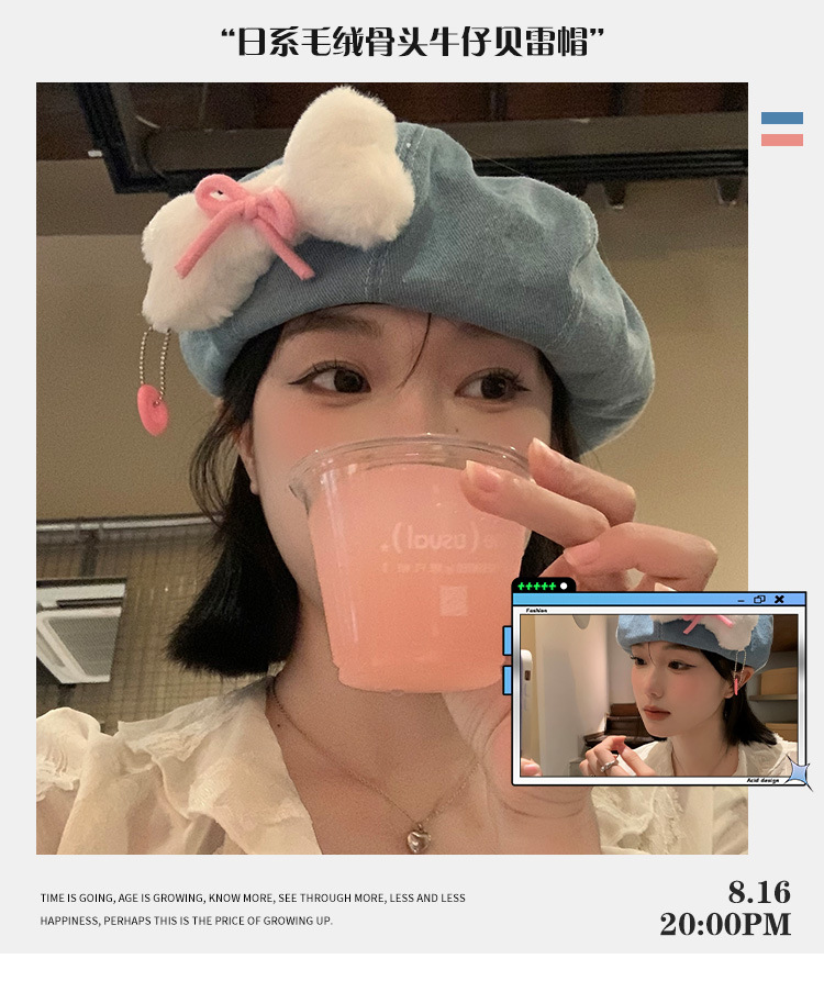 일본 스타일 봉제 뼈 데님 베레 여성 봄 가을 한국 스타일 베이 레이 화가 캡 큰 머리 둘레 팔각형 트렌디 모자스토어 가기