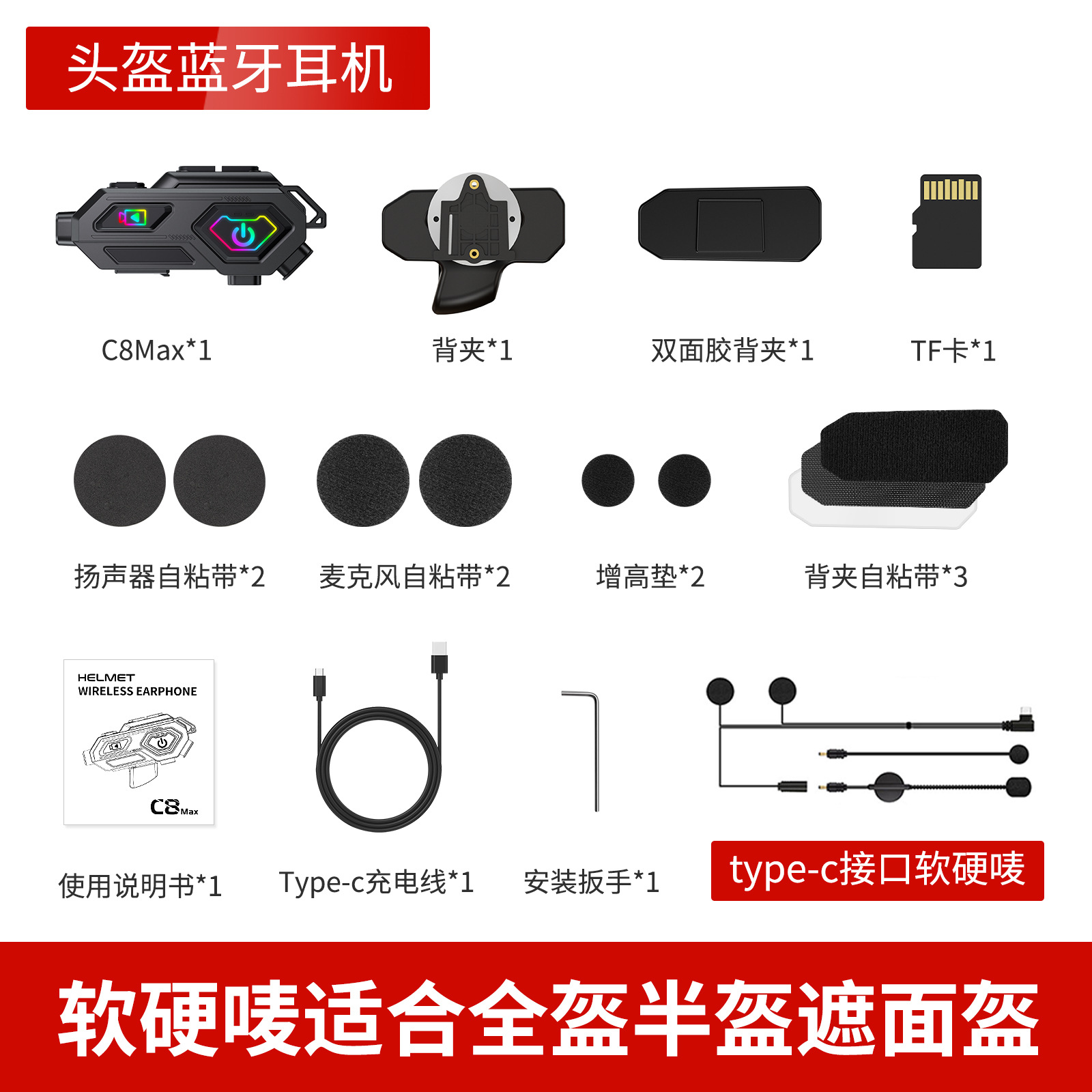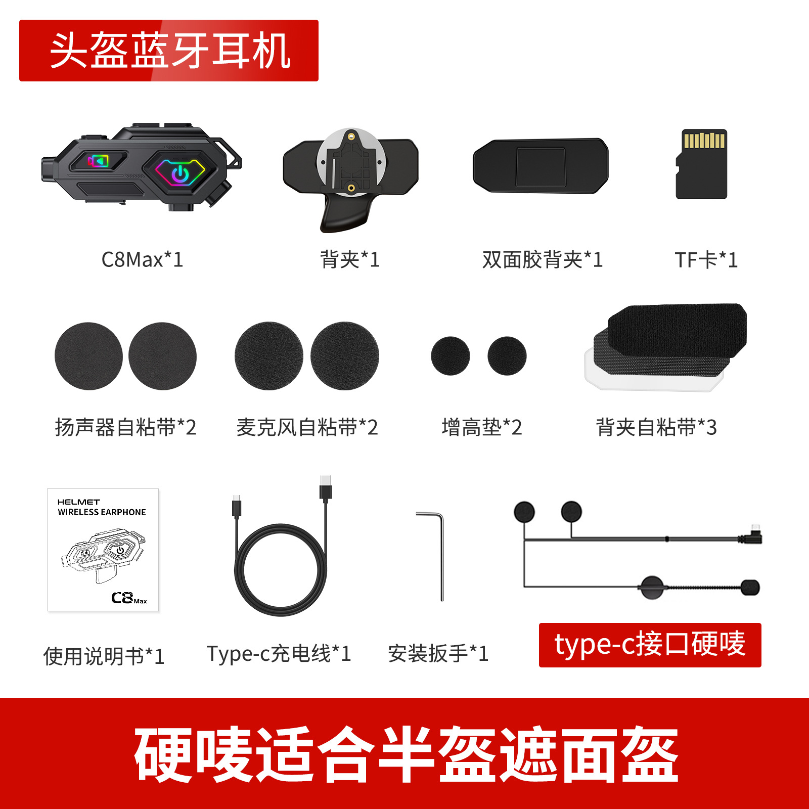• C8max 비디오 인터콤 - 소프트 및 하드 마크 변환 가능 - 64G 메모리 - (풀 페이스 헬멧 및 하프 헬멧용 범용)