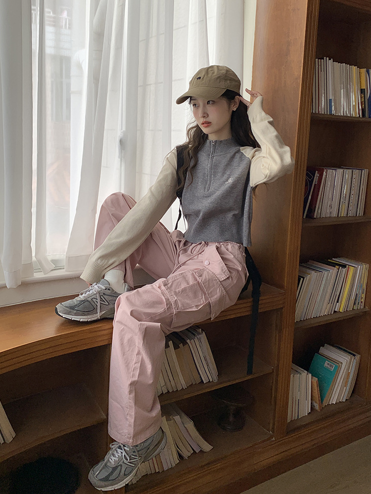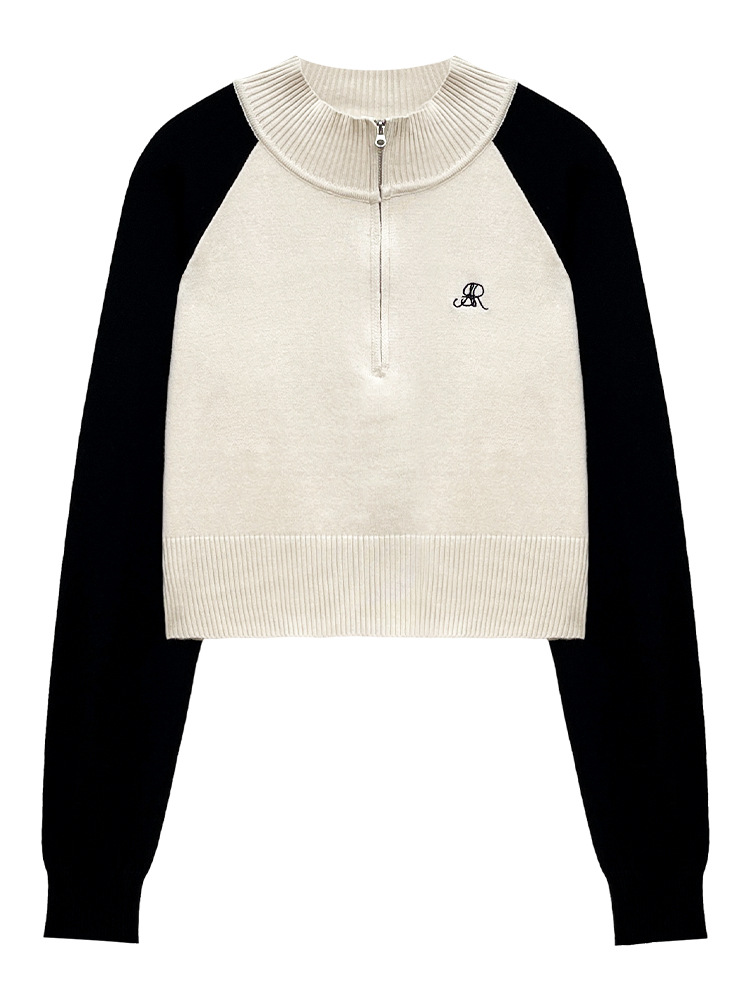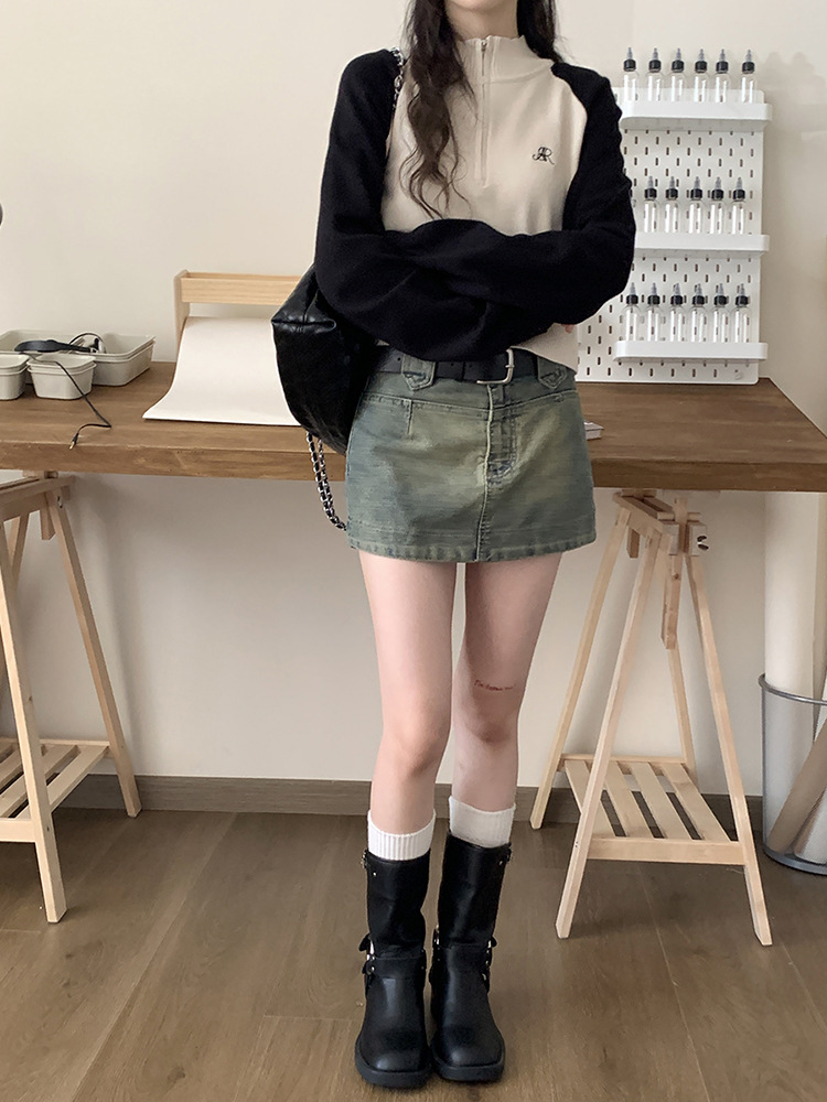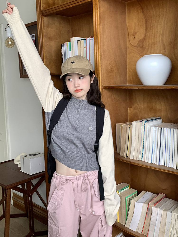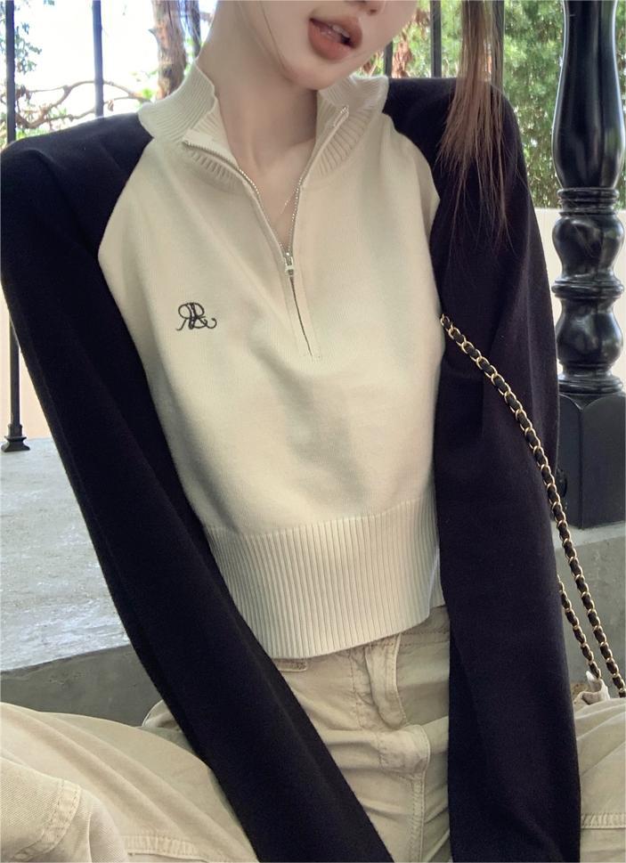 초가을 신상 루샤오투안 투톤 대비 컬러 아카데믹 스타일 니트 한국 디자인 감각 독특하고 다재다능한 여성 상의