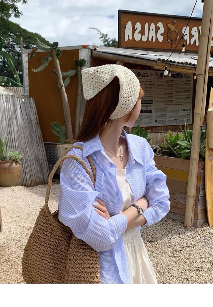 한국, 중공 프랑스 목가적 인 크로 셰 트라이앵글 터번 여성의 여름 컨캐브 니트 터번과 블로거스토어 가기