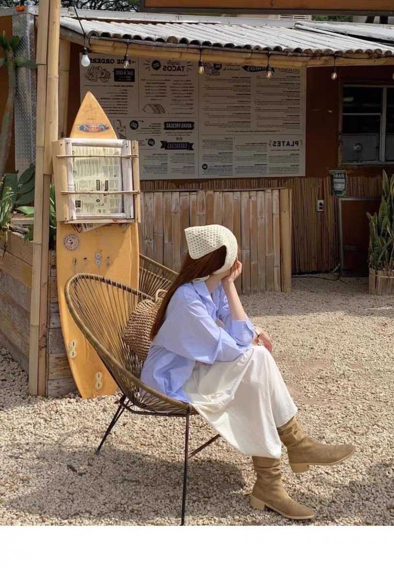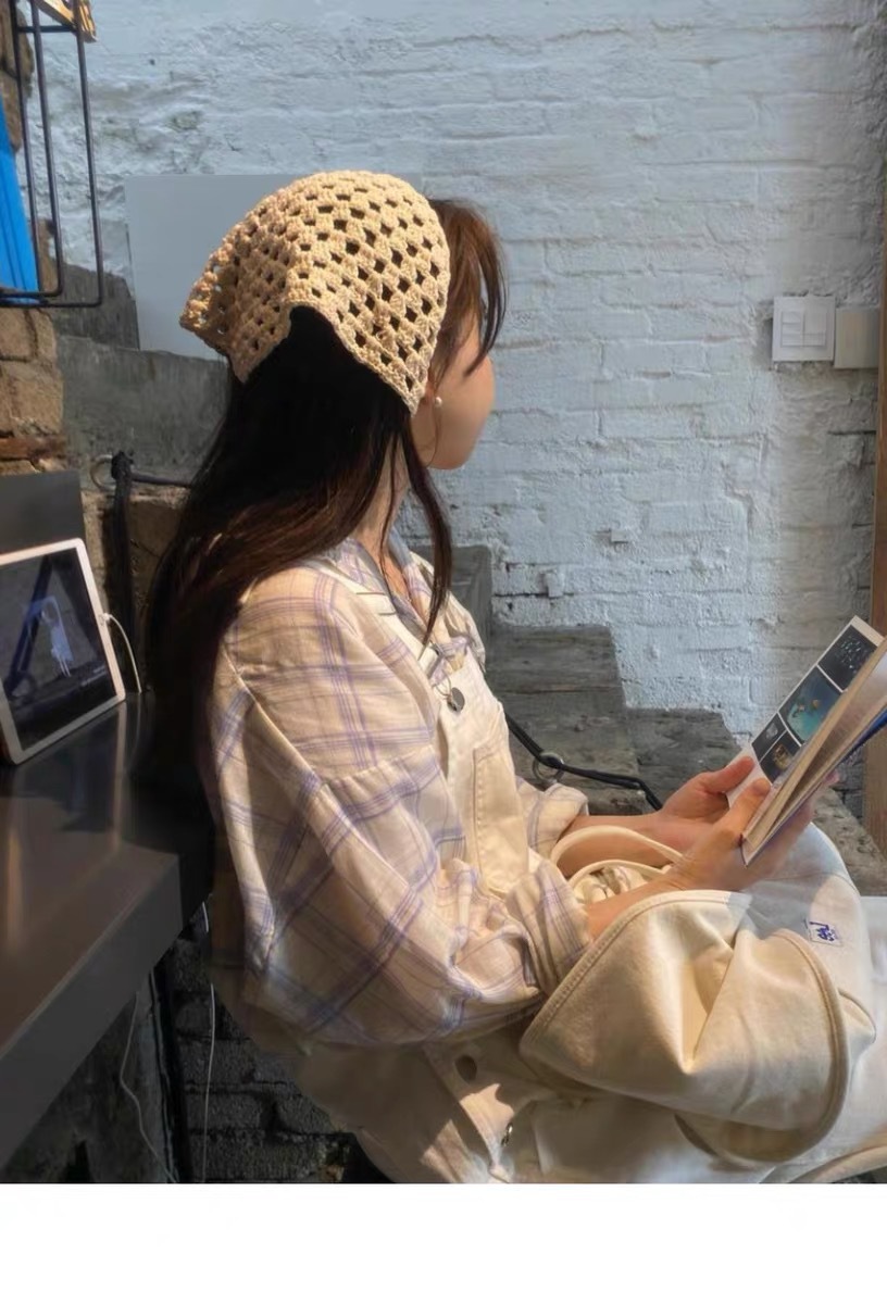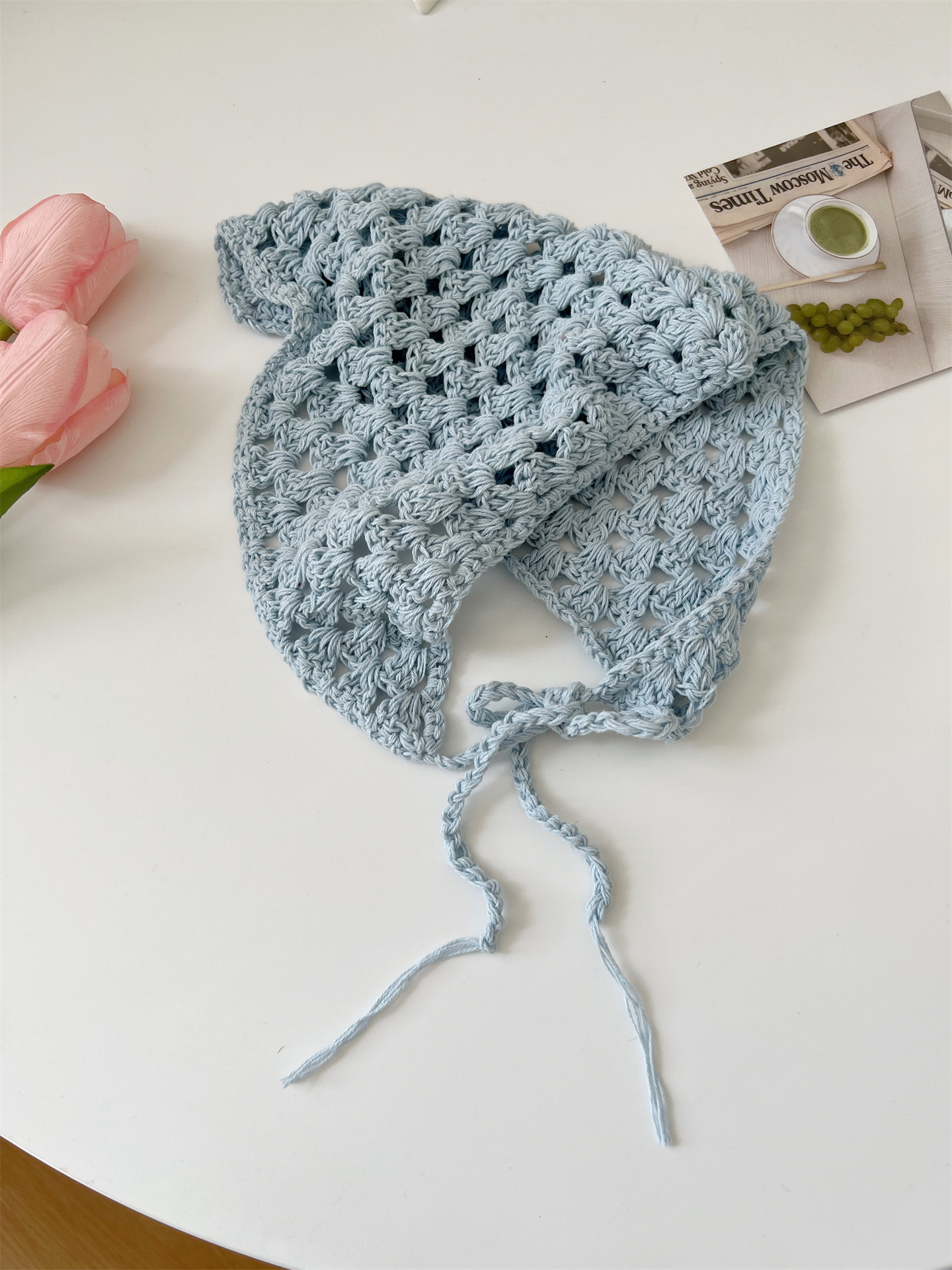 韩国ins博主同款镂空法式田园钩花三角头巾女夏凹造型针织包头巾