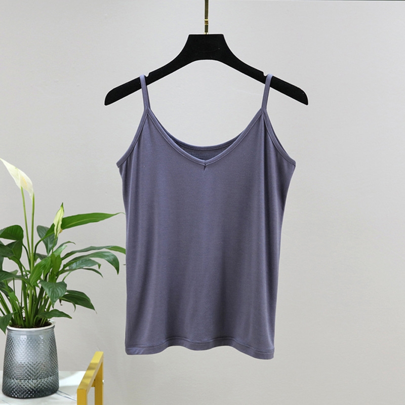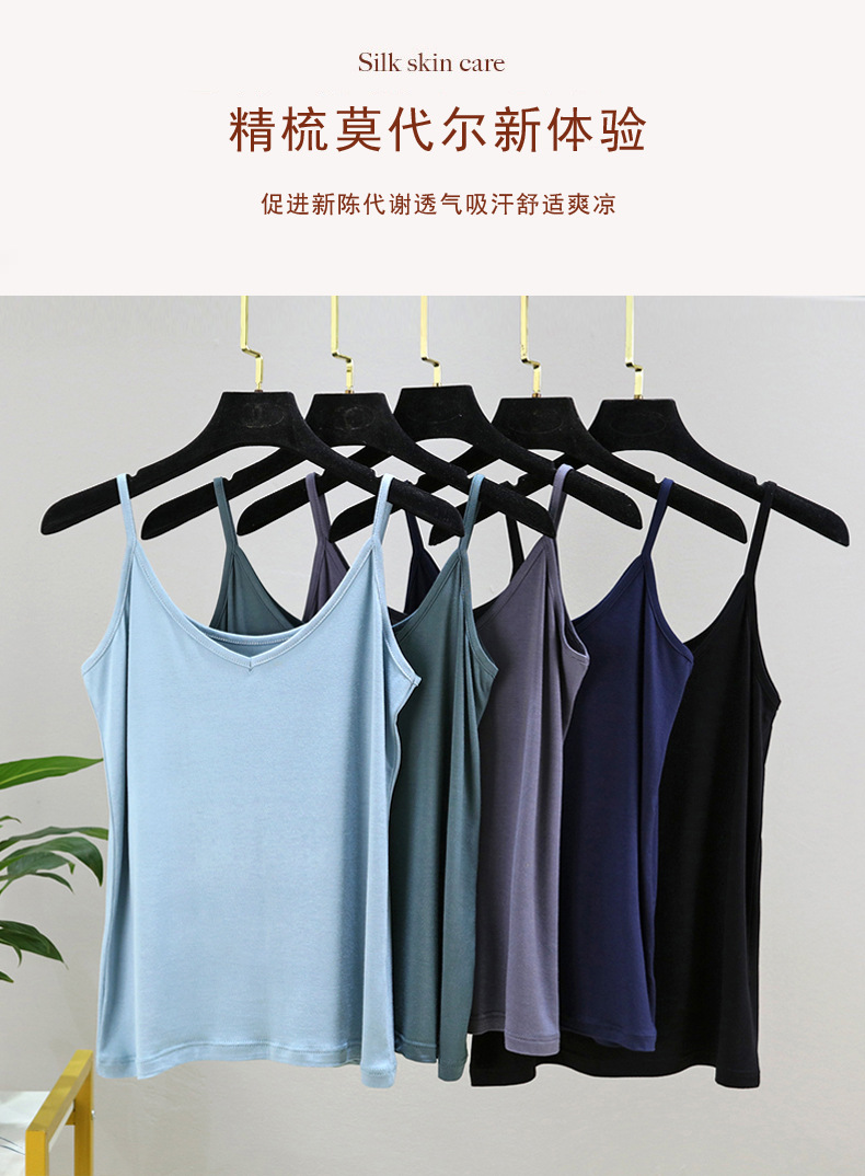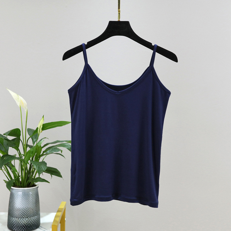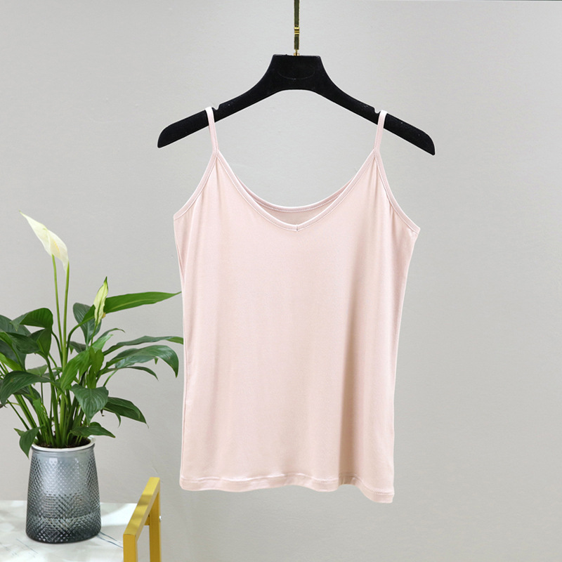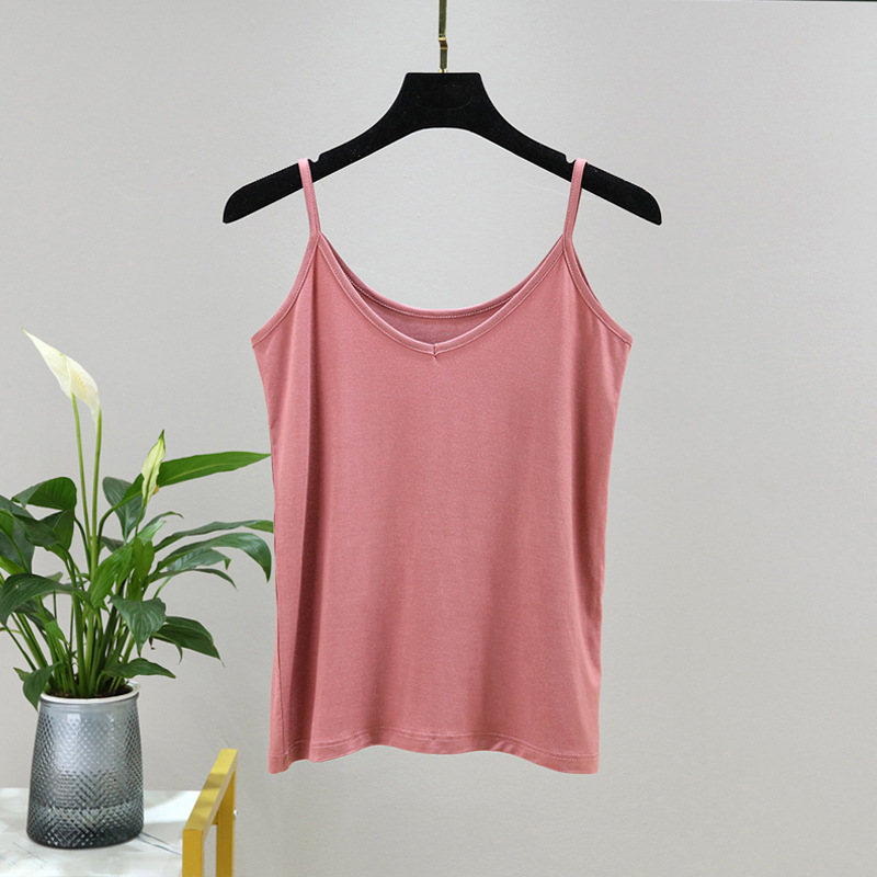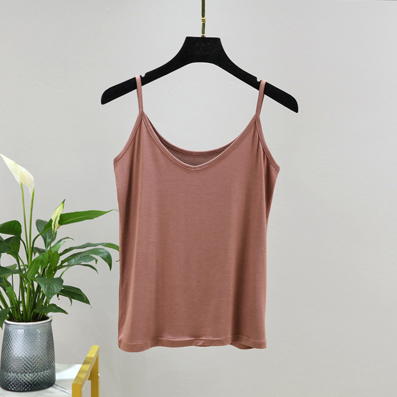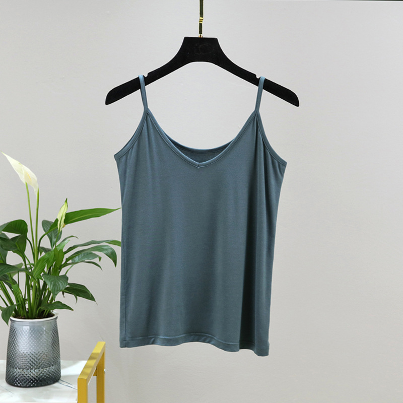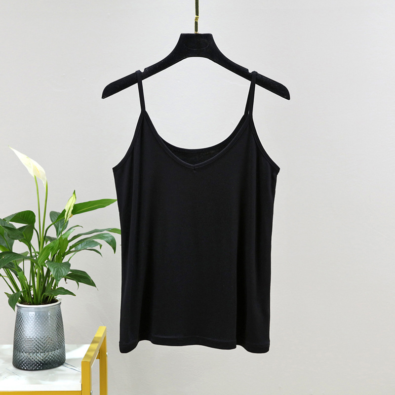 모달 카미솔 여성 여름 아우터 브이크베이스 셔츠 짧은 백리스 피트니스 얇은 민소매 탑