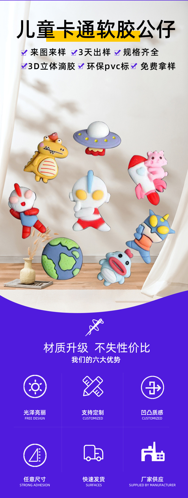 도매 pvc 부드러운 고무 인형 어린이 의류 액세서리 3d 3 차원 pvc 부드러운 고무 냉장고 자석 창조적 인 만화 인형