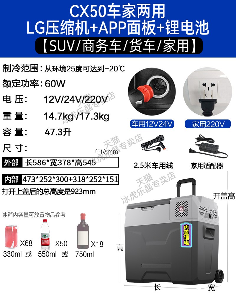 • CX50 자동차 및 가정용 겸용(LG 압축기 + 리튬 배터리 + APP 패널)