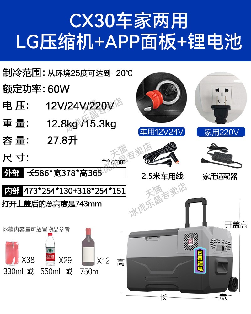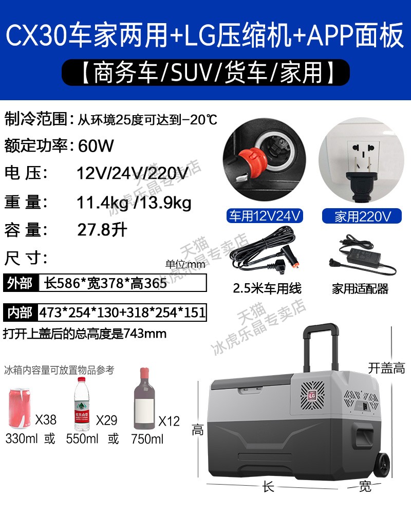 • CX30 자동차 및 가정용 겸용(LG 압축기 + 리튬 배터리 + APP 패널)