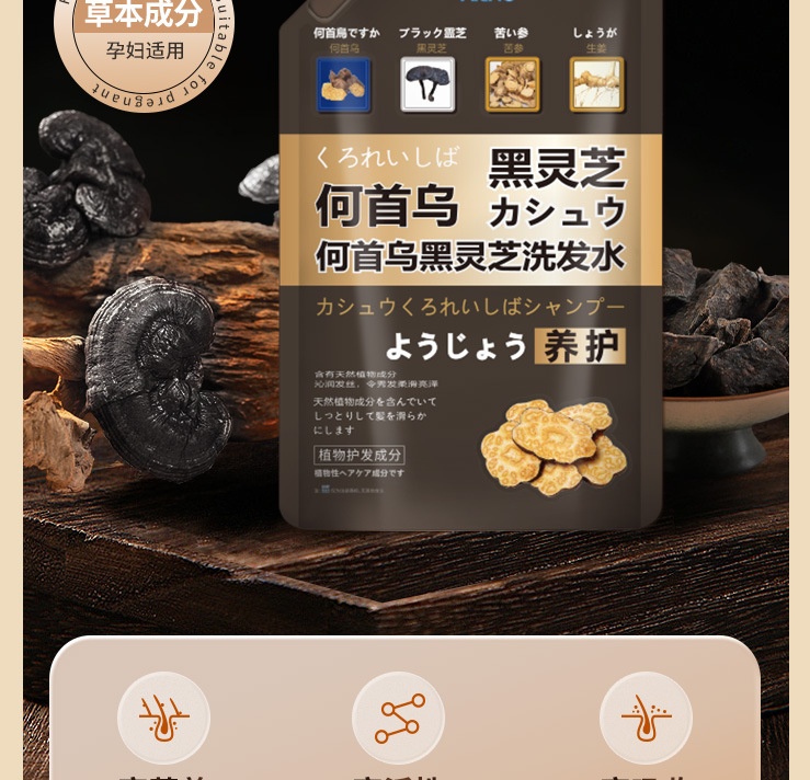 Akino AKINO Black Ganoderma lucidum Polygonum Multiflorum 샴푸 화이트 헤어 블랙 헤어 안티-비듬 안티-가려움 컨트롤 방유제 진저 푹신한스토어 가기