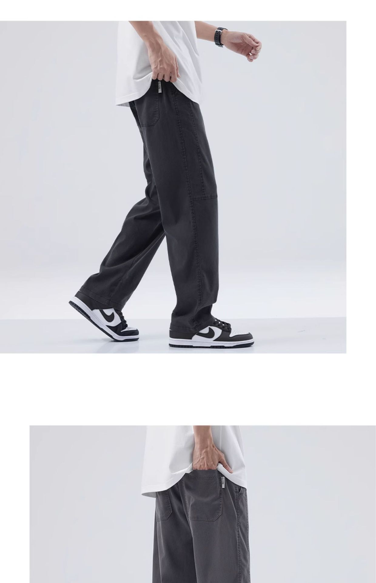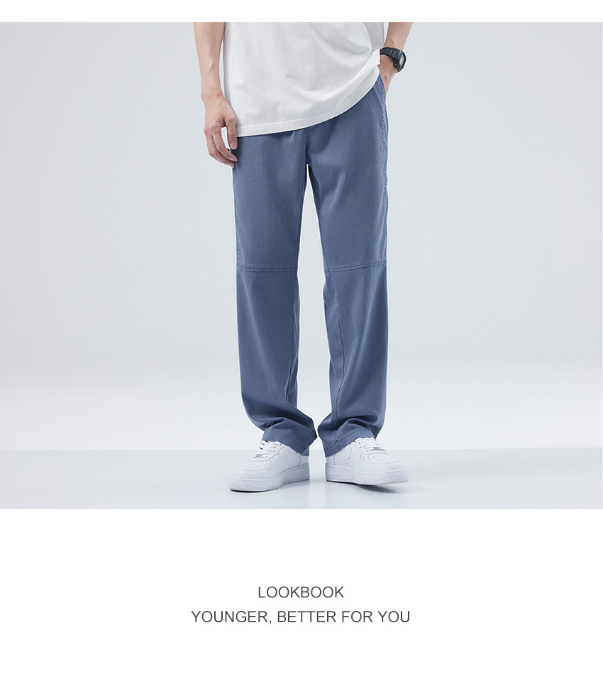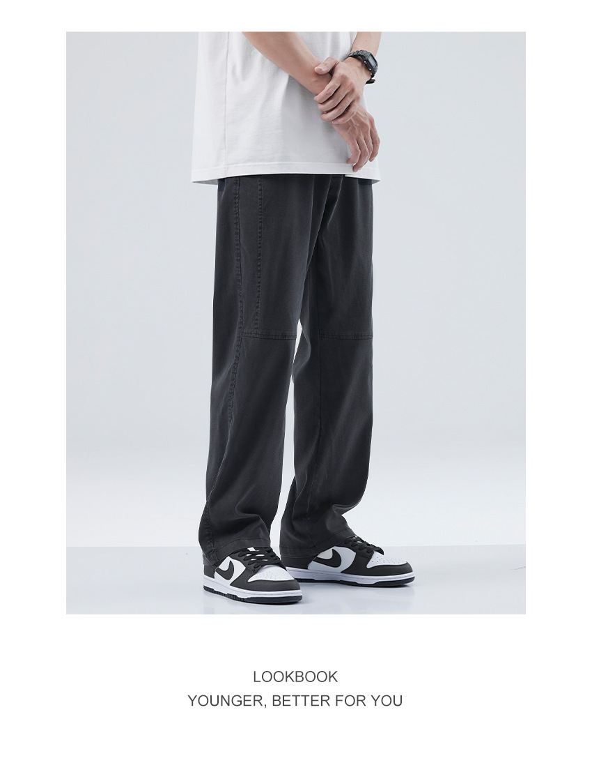 Hanska 캐주얼 바지 남자 여름 얇은 Lyocell 아이스 텐셀 드랩 넓은 다리 느슨한 스트레이트 긴 바지스토어 가기