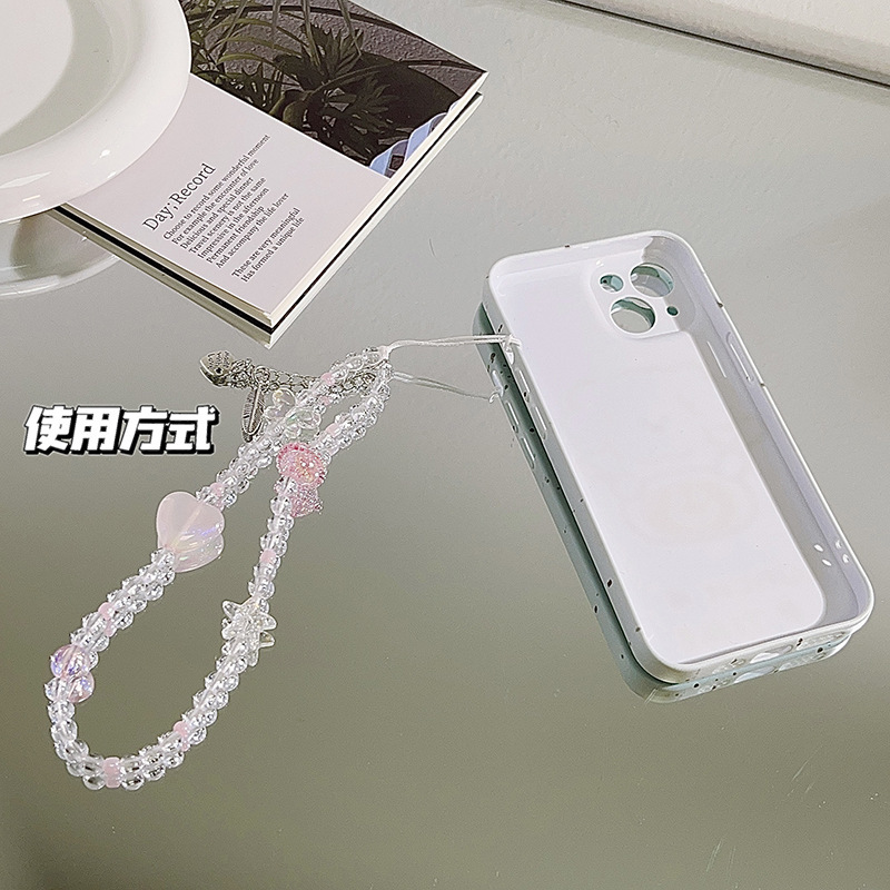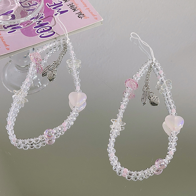 소녀의 심장 투명 구슬 휴대 전화 케이스 펜던트 크리스탈 러브 폰 체인 DIY 수제 작은 선물 키 펜던트