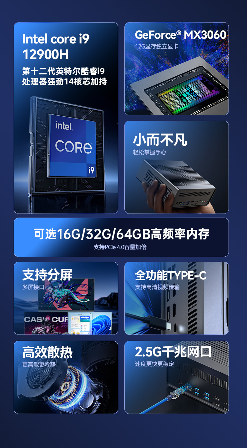 코어 i9 단일 디스플레이 RTX4060 미니 컴퓨터 호스트 미니 PC 게임 라이브 미니 데스크탑 작은 섀시스토어 가기