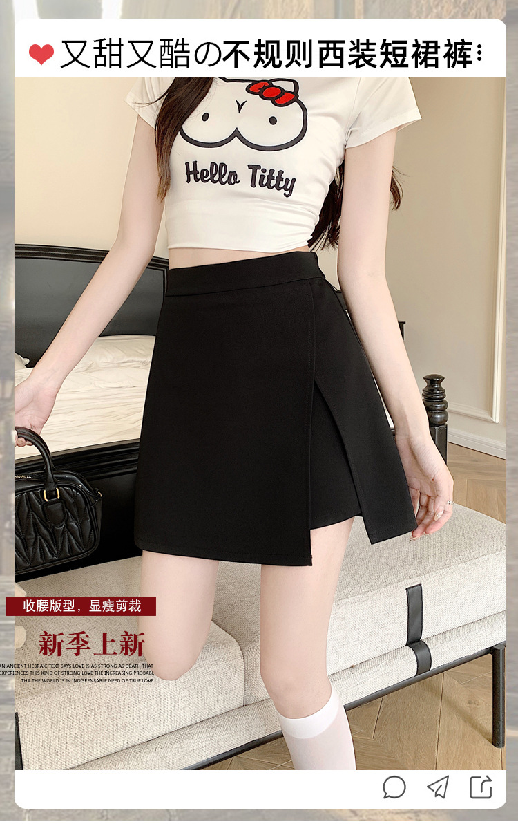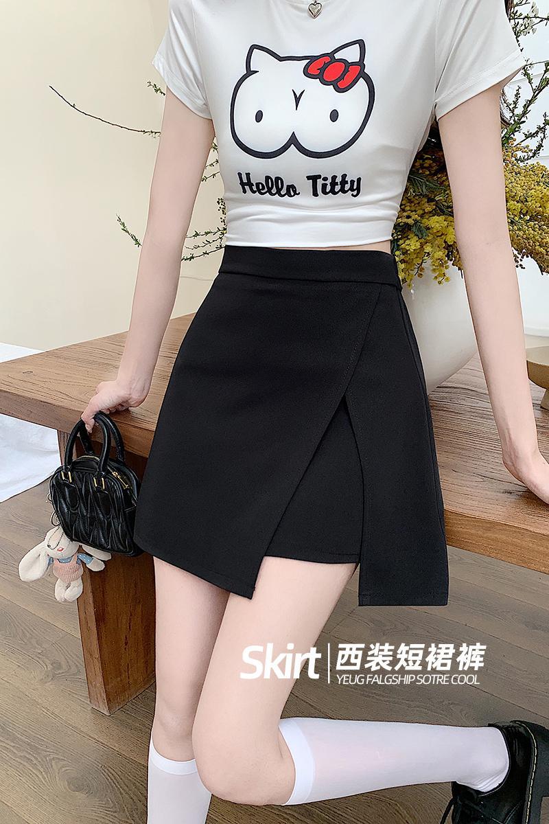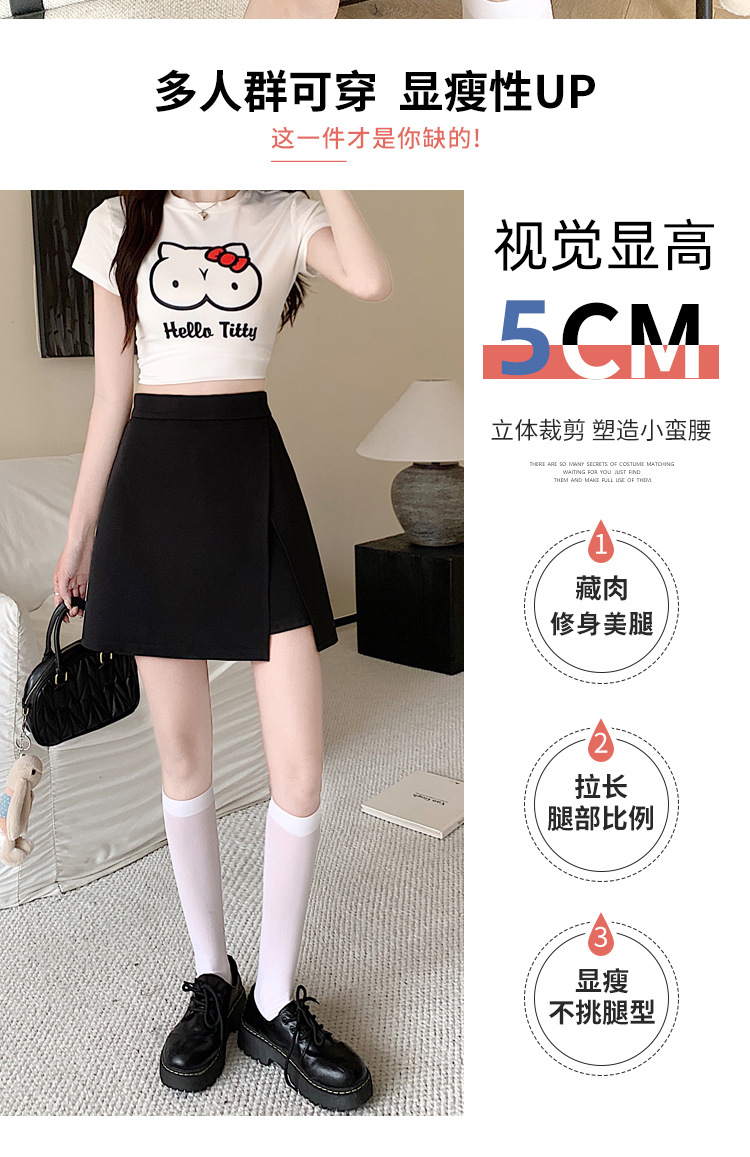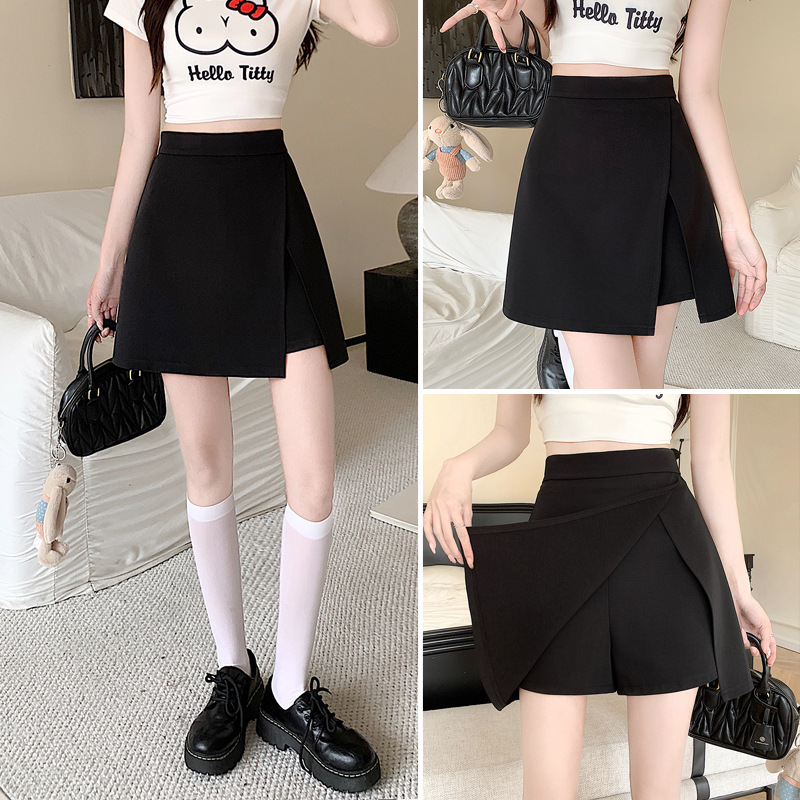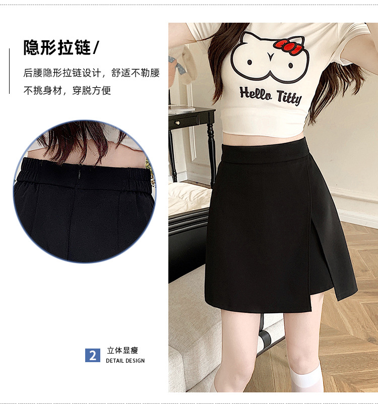 실제 촬영 비디오 세심한 기계 분할 A 라인 힙 스커트 여자 2024 여름 한국 안티 라이트 블랙 올 매치 스커트스토어 가기