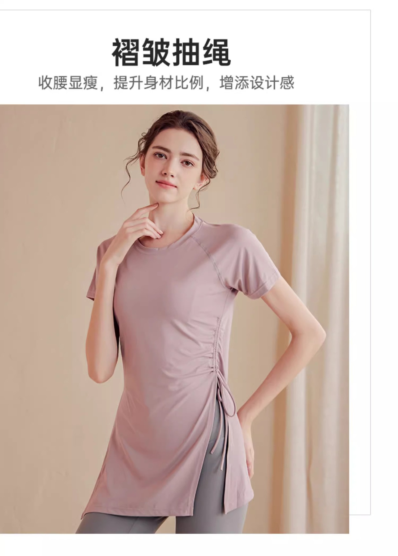 달리기 빠른 건조 옷 여성 피트니스 티셔츠 캐주얼 통기성 슬리밍 엉덩이 커버 스포츠 레저 요가 의류 최고 봄과 여름스토어 가기