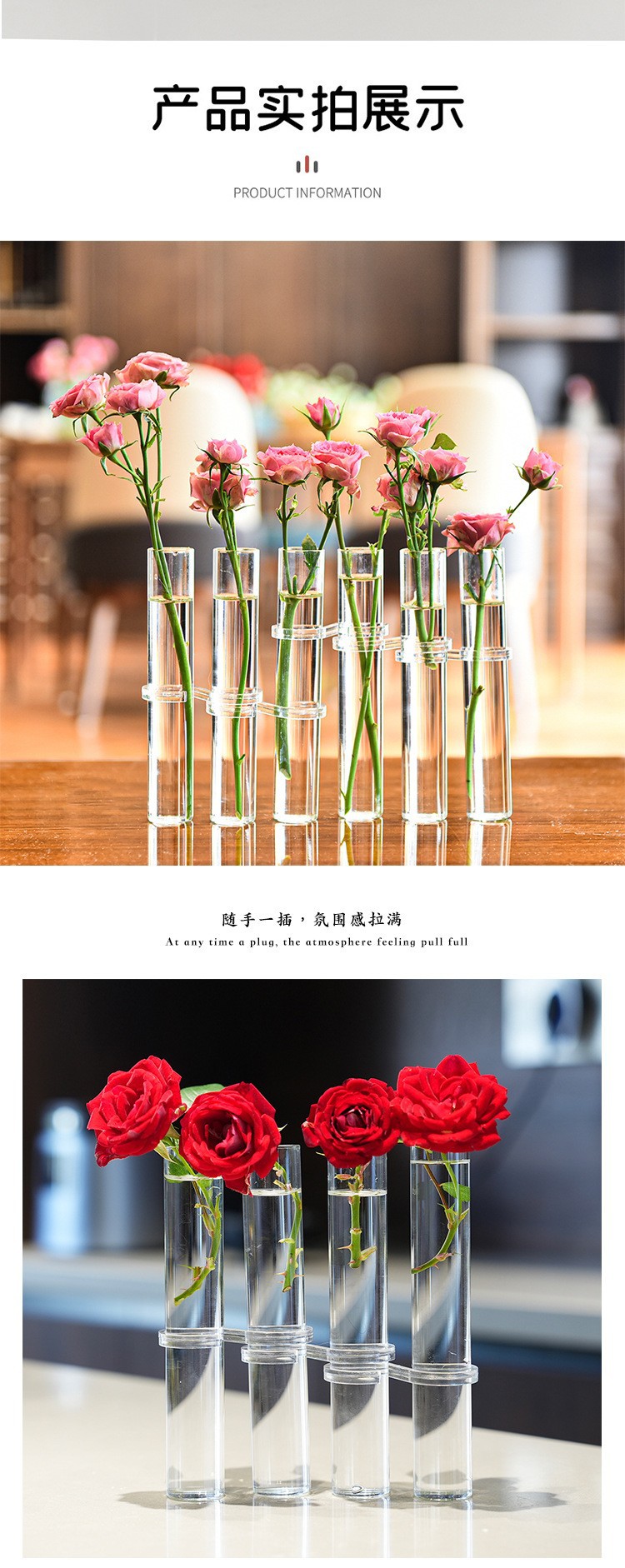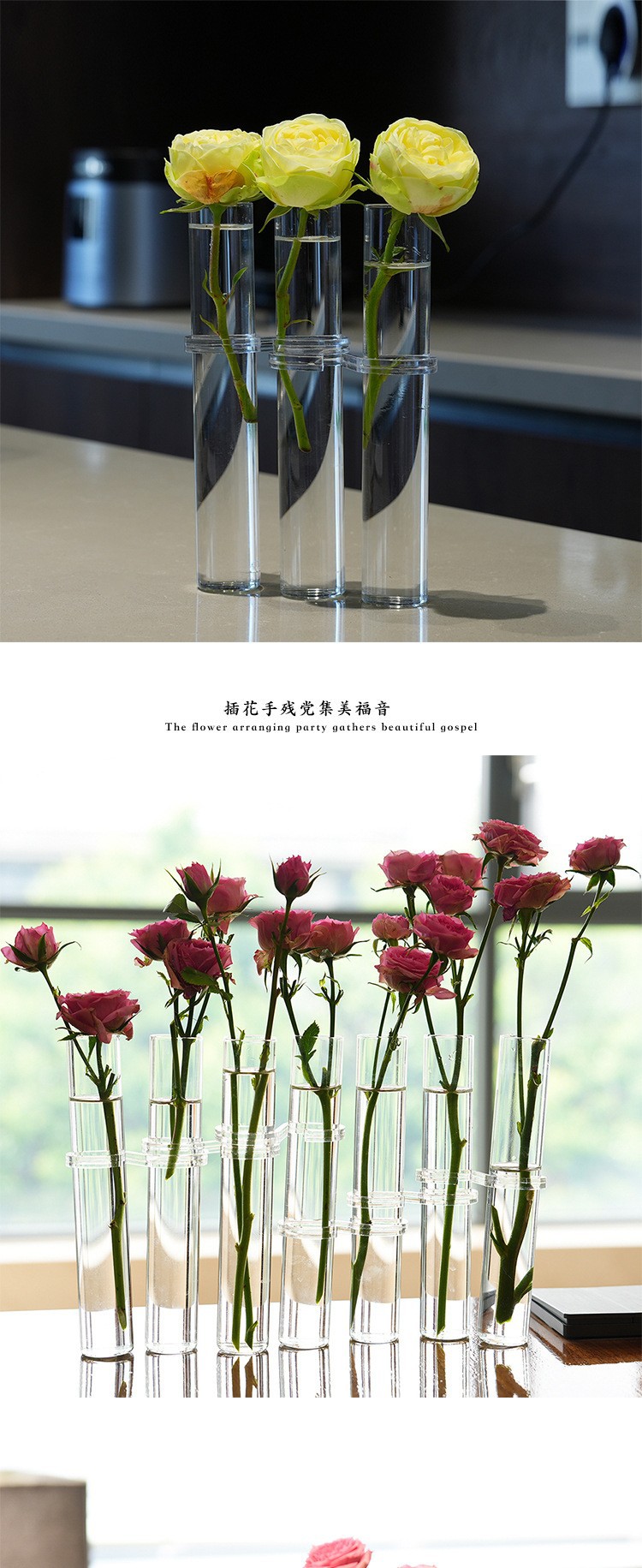 한 줄의 테스트 튜브 꽃병 녹색 식물 수경 유리 꽃병 창조적 인 인터넷 축하 꽃 랙 접이식 홈 장식품스토어 가기