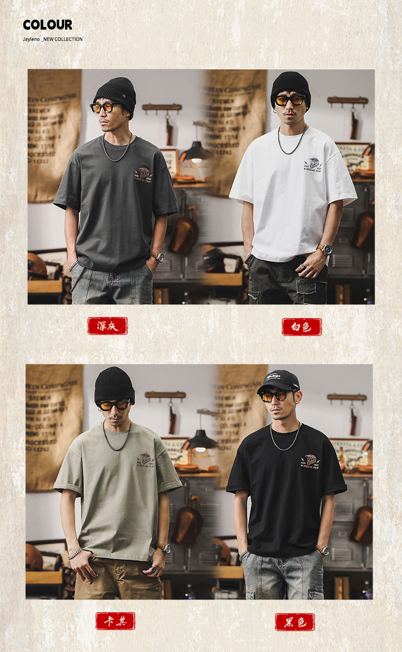 Gereno 아메리칸 헤비급 반팔 티셔츠 남성 여름 루즈 트렌디 브랜드 2025 신작 소년 반팔 티셔츠 탑 T스토어 가기