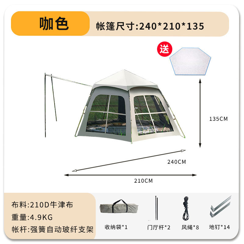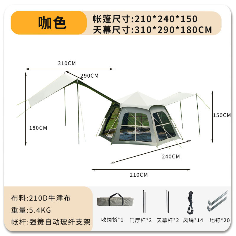 텐트 야외 접는 육각형 휴대용 통합 하늘 커튼 야영 밤새 캠핑 두꺼운 방수 블랙 고무 텐트스토어 가기