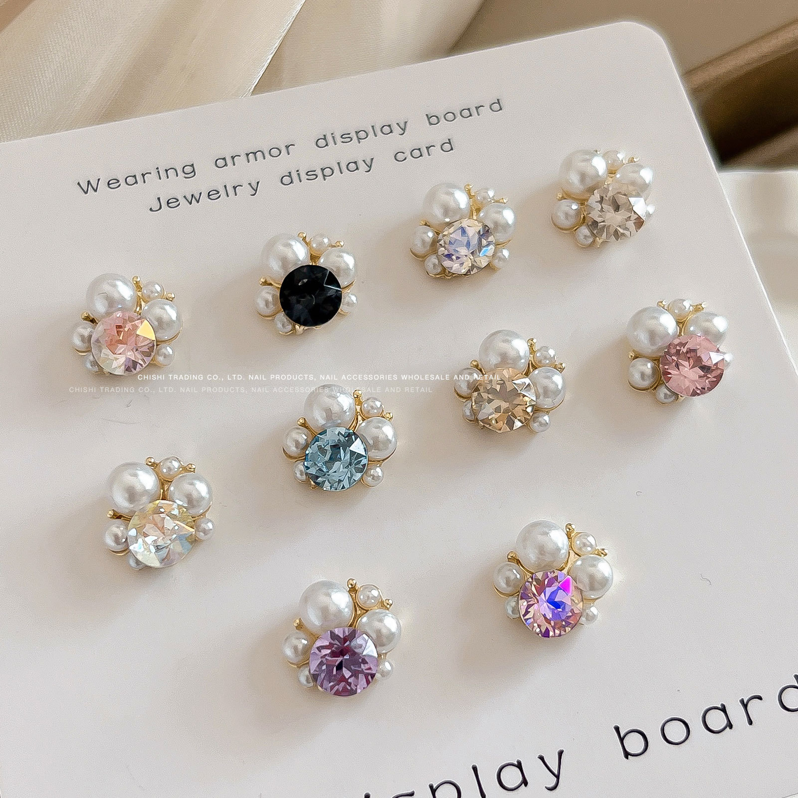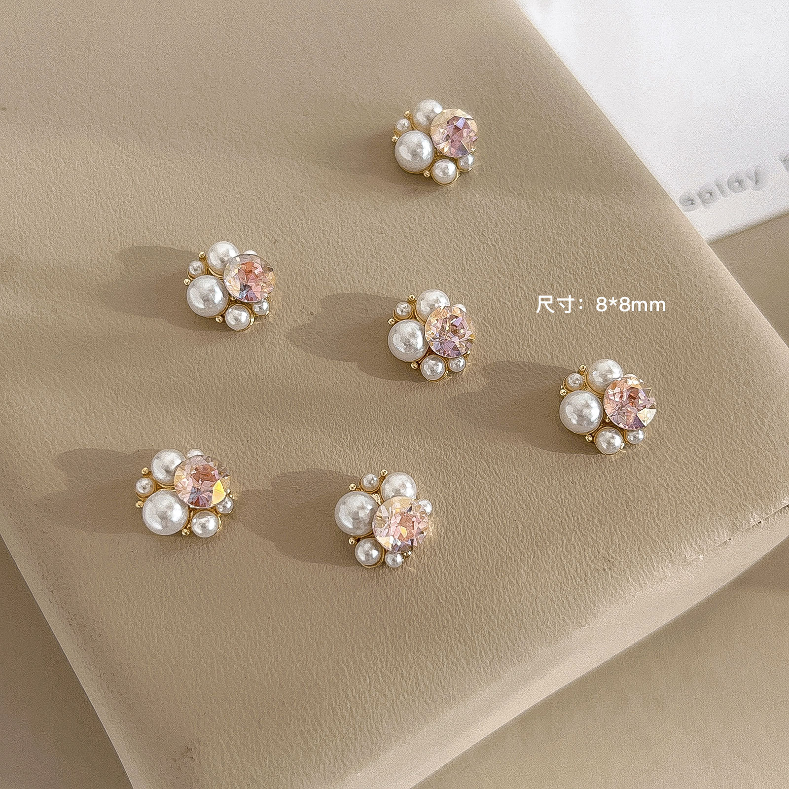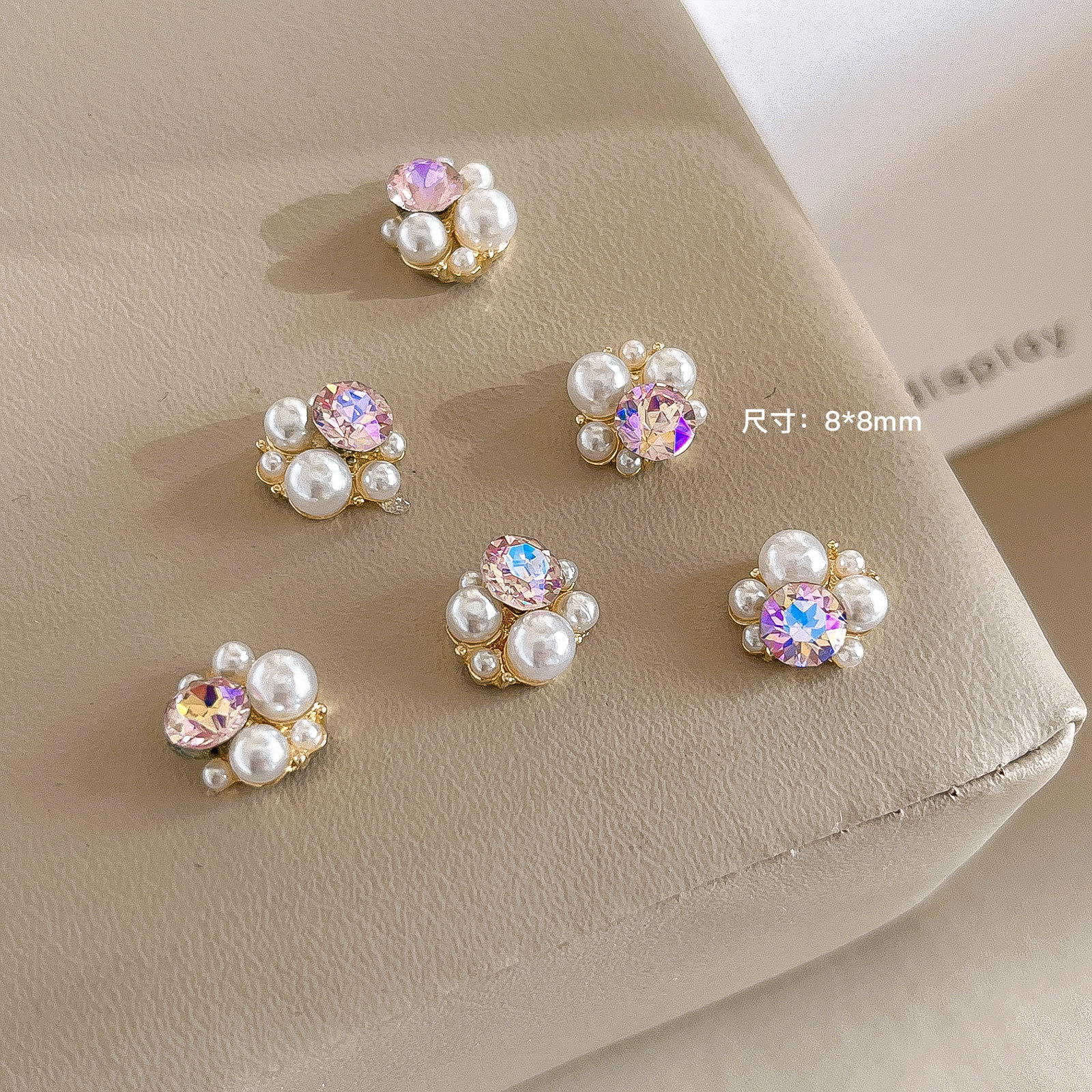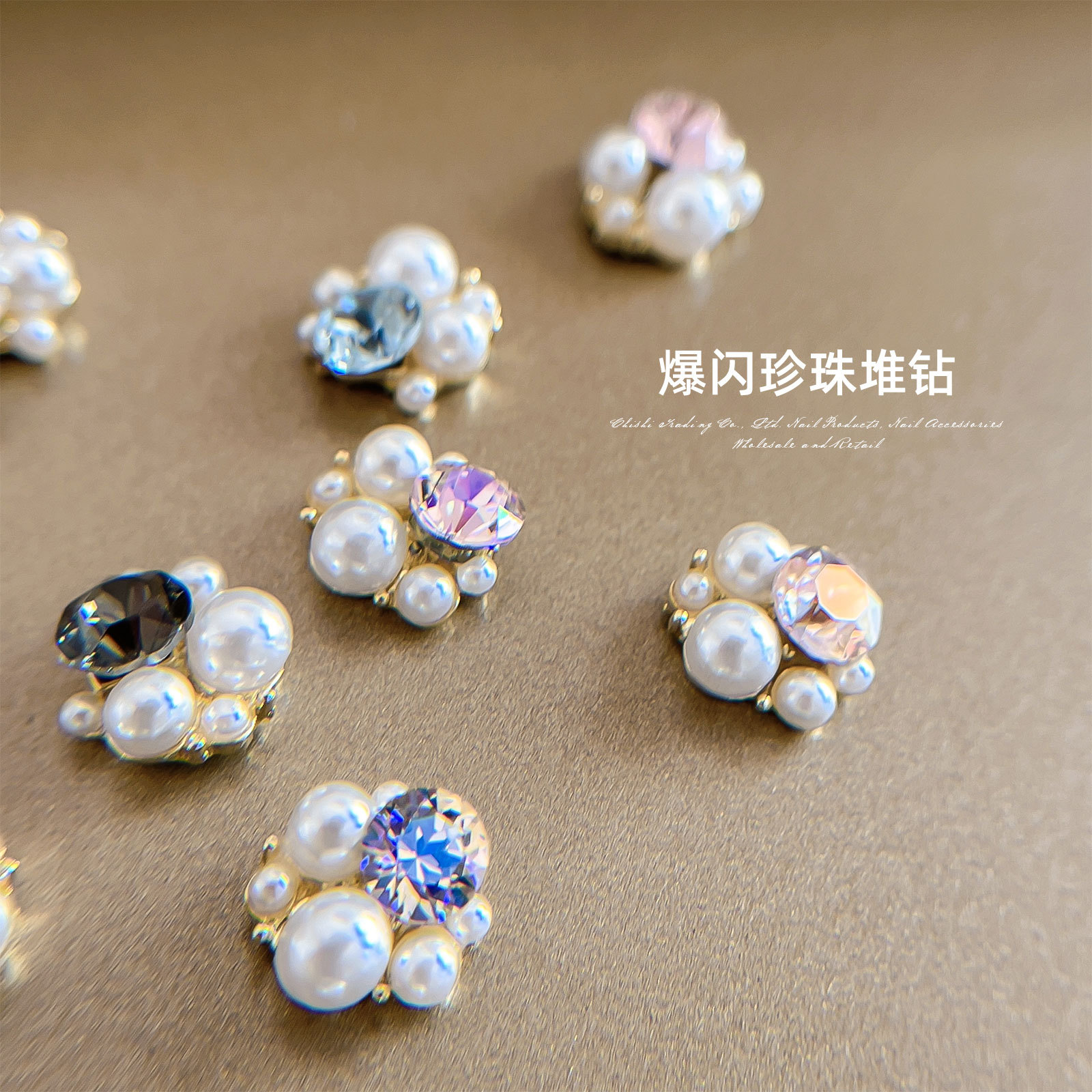 그물 붉은 폭발 진주 더미 다이아몬드 네일 아트 보석 슈퍼 플래시 라운드 다이아몬드 손 상감 진주 완성 네일 액세서리 다이아몬드 도매스토어 가기