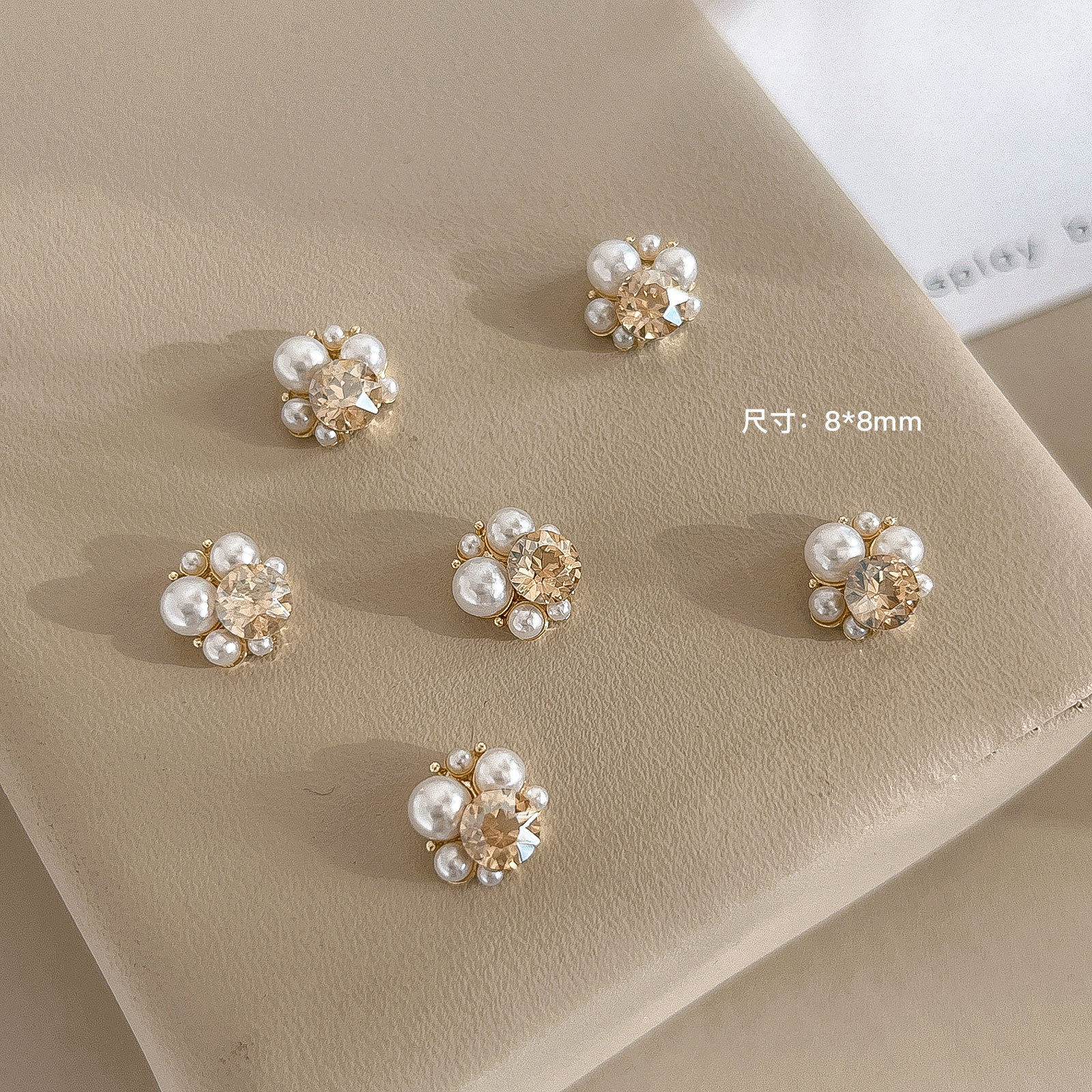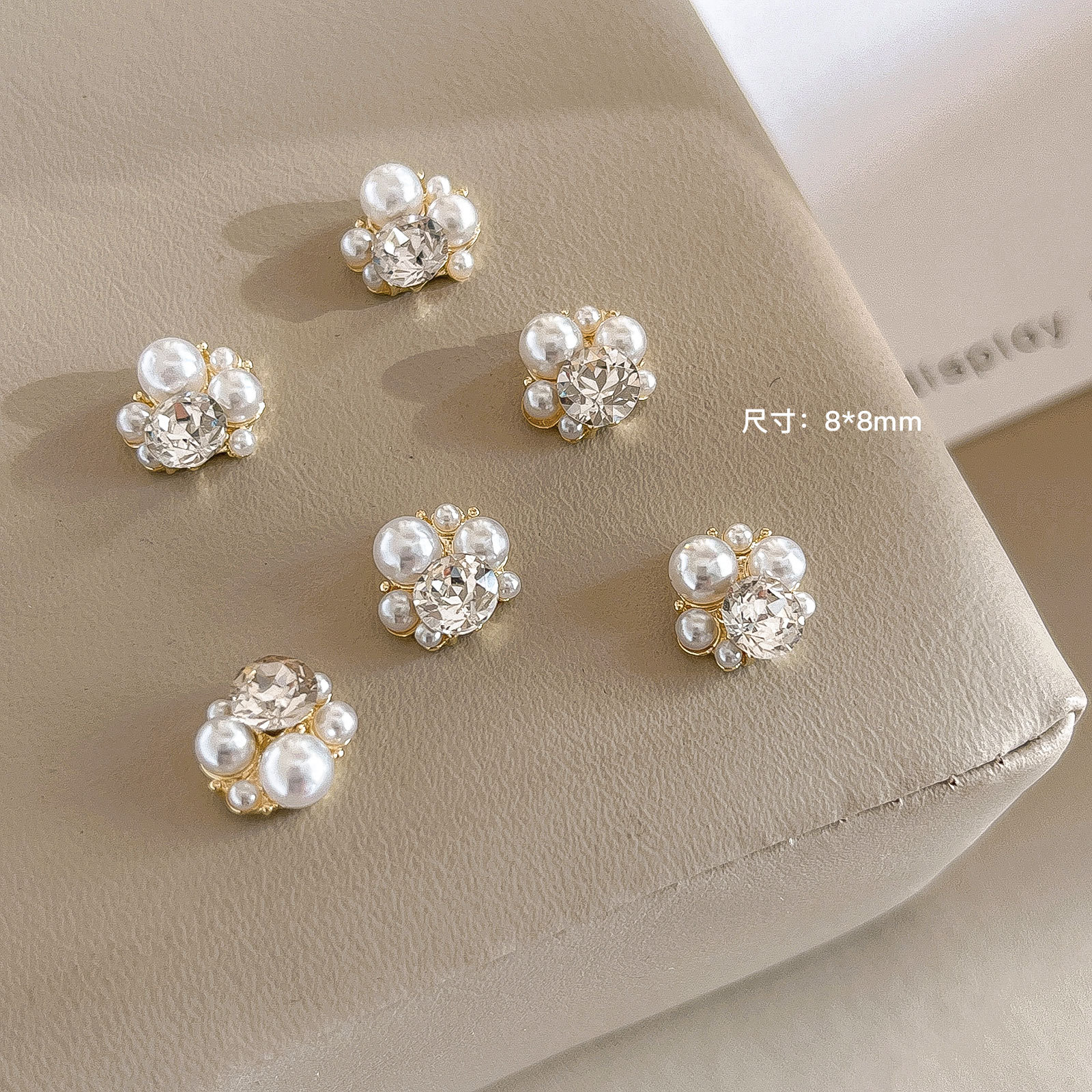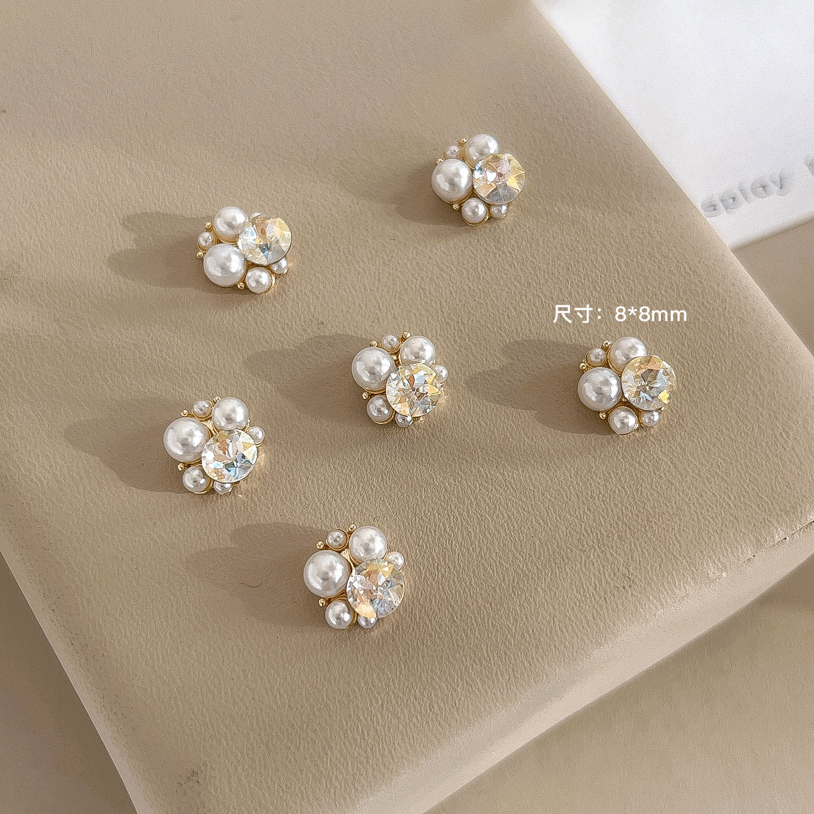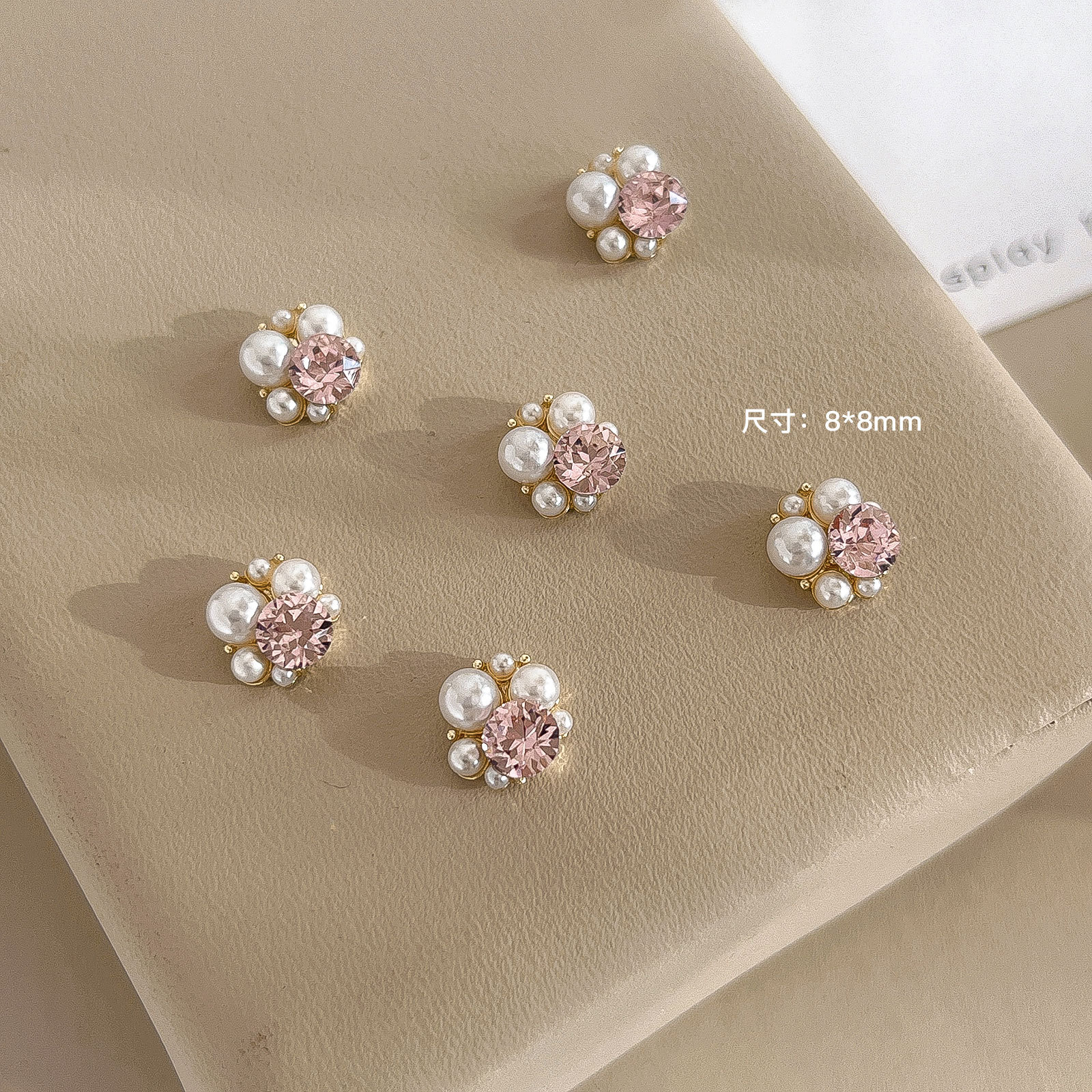 그물 붉은 폭발 진주 더미 다이아몬드 네일 아트 보석 슈퍼 플래시 라운드 다이아몬드 손 상감 진주 완성 네일 액세서리 다이아몬드 도매스토어 가기