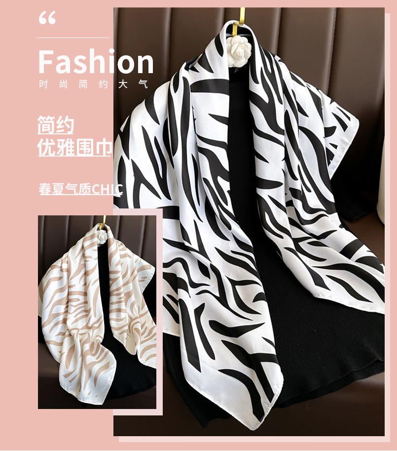 유럽과 미국 스타일의 동물 줄무늬 스카프 90cm 트윌 스카프 올 매치 라이트 럭셔리 대형 스퀘어 스카프 선 스크린 목도리 헤드 스카프 여성용 뉴