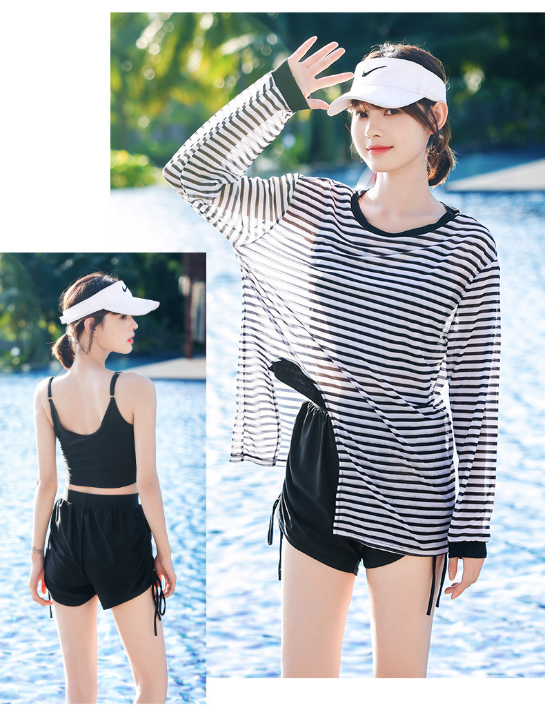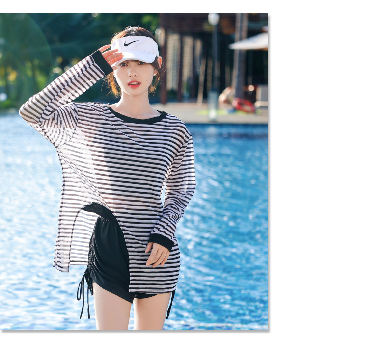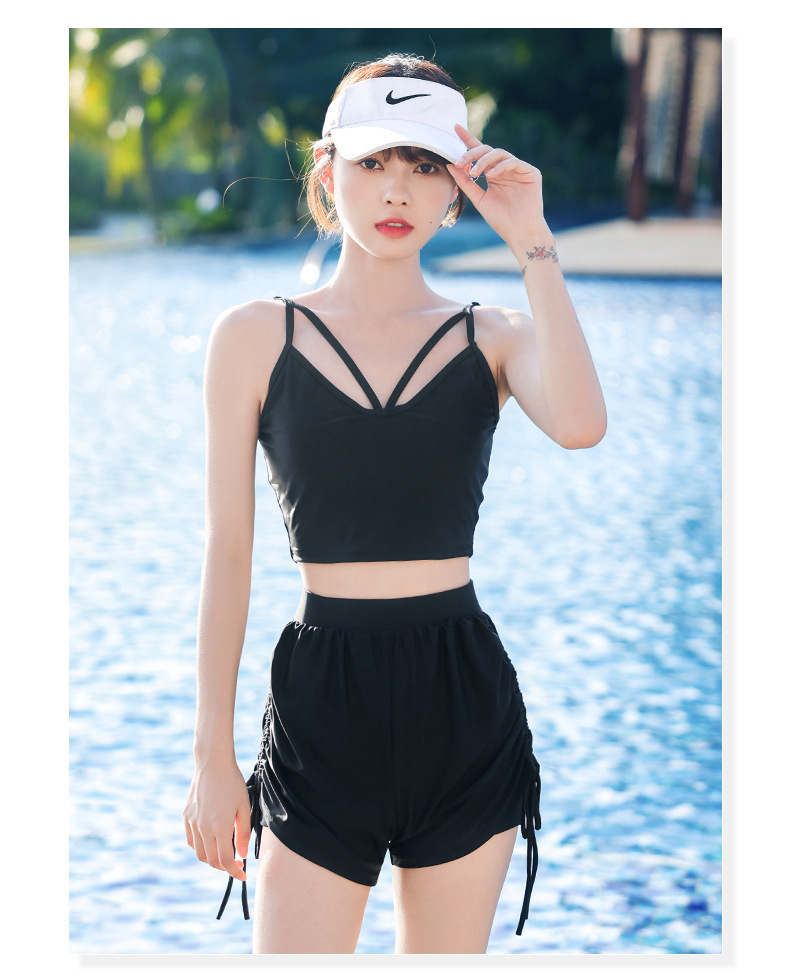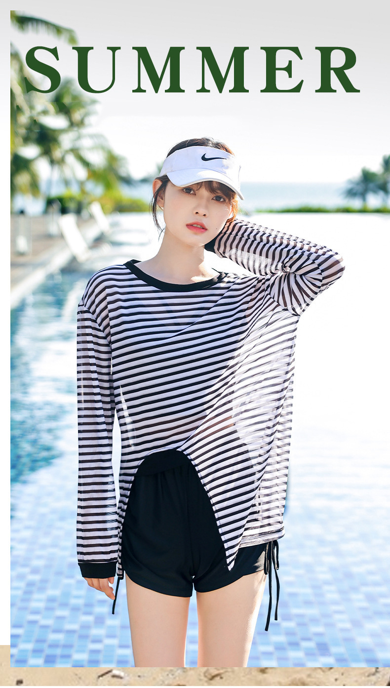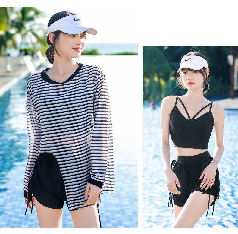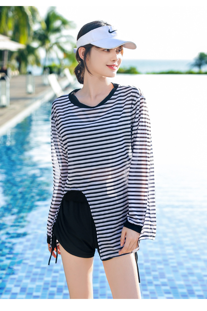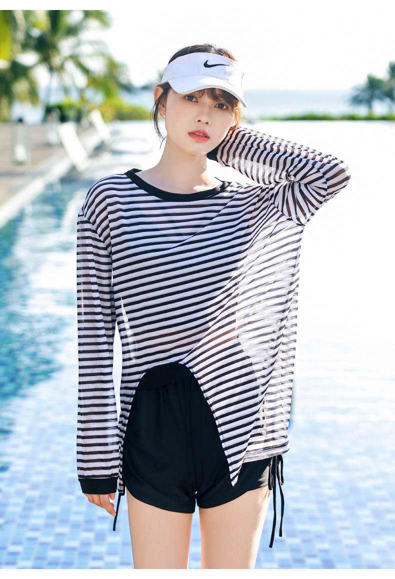 쪼개진 수영복 여성 온천 국경 새로운 폭발 보수적 배꼽 덮음 슬리밍 스포츠 스타일 3 피스 수영복