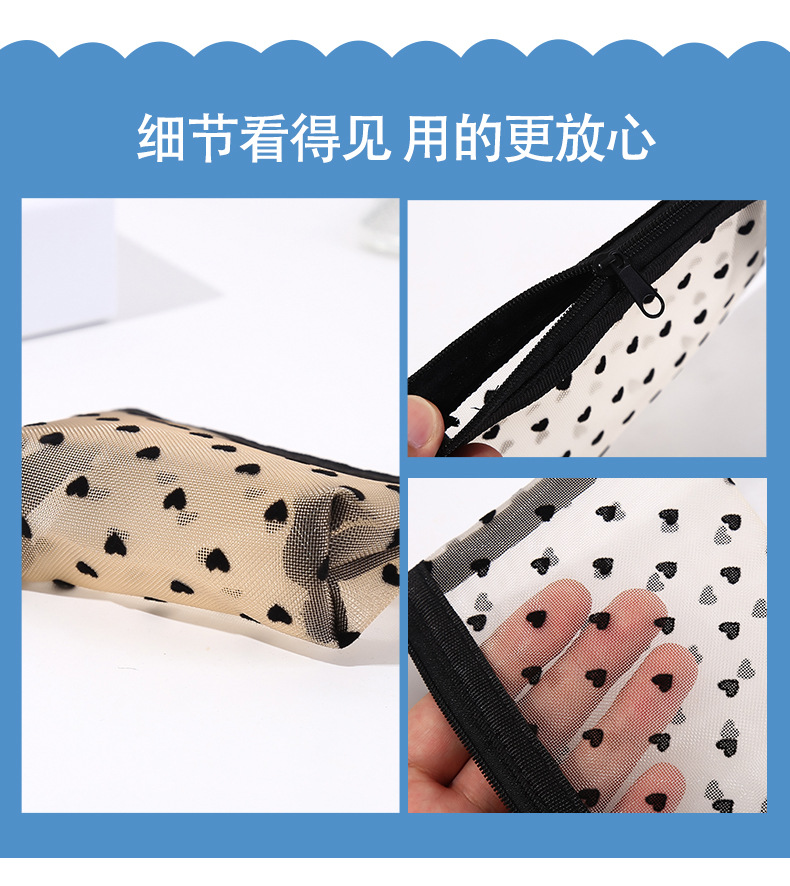 국경을 넘는 업그레이드 나일론 메쉬 벨벳 하트 모양 미니 러브백 화장품 가방 펜 케이스 보석 립스틱 수납 동전 지갑스토어 가기