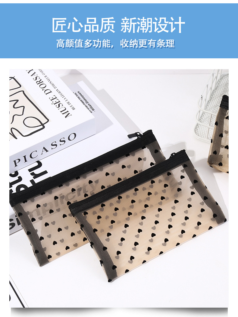 국경을 넘는 업그레이드 나일론 메쉬 벨벳 하트 모양 미니 러브백 화장품 가방 펜 케이스 보석 립스틱 수납 동전 지갑