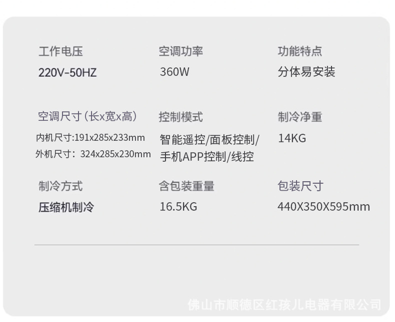 • ( 1m 연결관) 220V 와이어 제어 분할 에어컨 (1300W 냉각 용량/3000BTU)