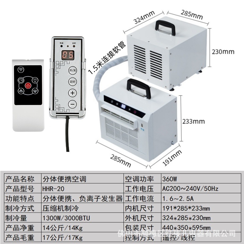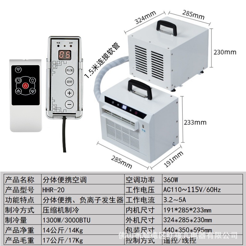 • ( 1.5m 연결관) 110V 와이어 제어 분할 에어컨 (1300W 냉각 용량/3000BTU)