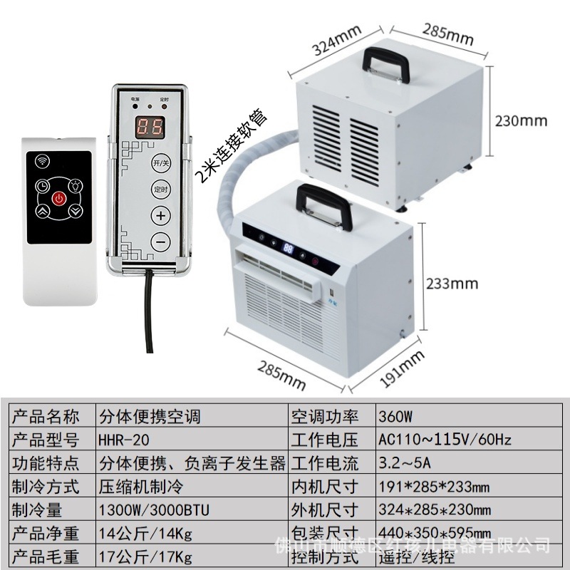• ( 2m 연결관) 110V 와이어 제어 분할 에어컨 (1300W 냉각 용량/3000BTU)