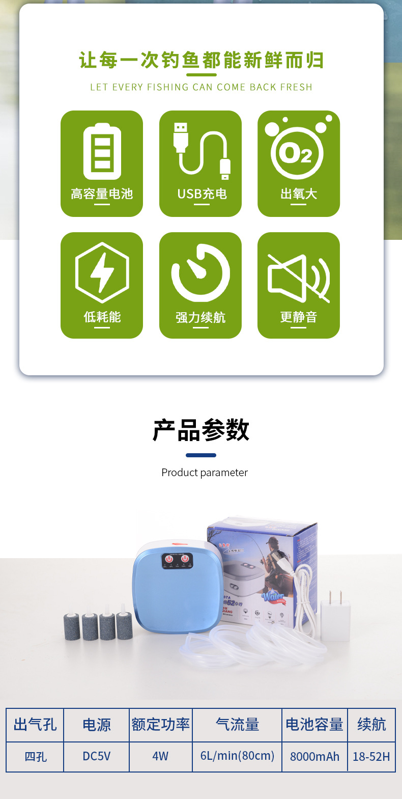 초강력 산소 펌프 야외 낚시 ac 및 dc 산소 펌프 충전 4 홀 대기 산소 펌프 소형 휴대용