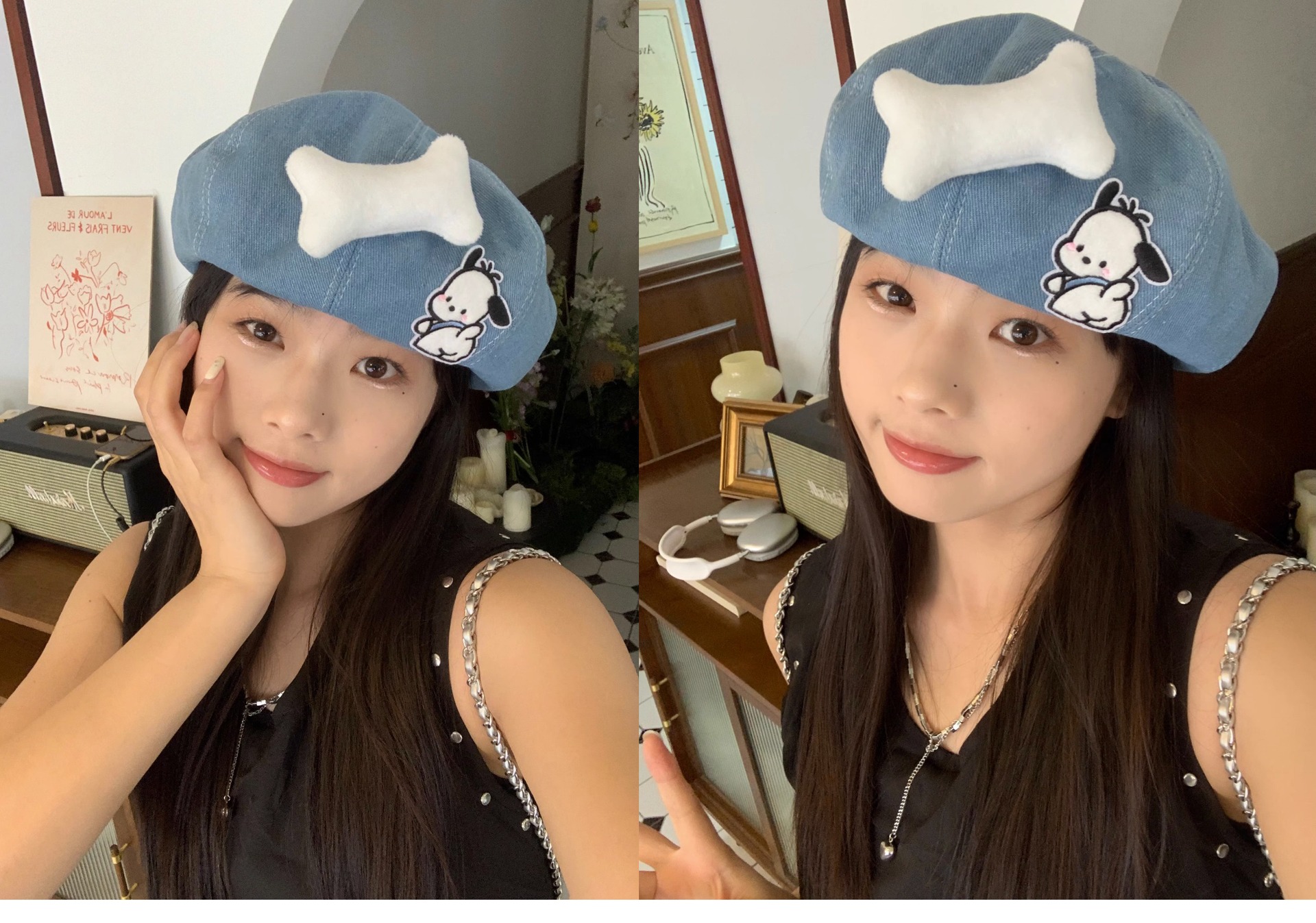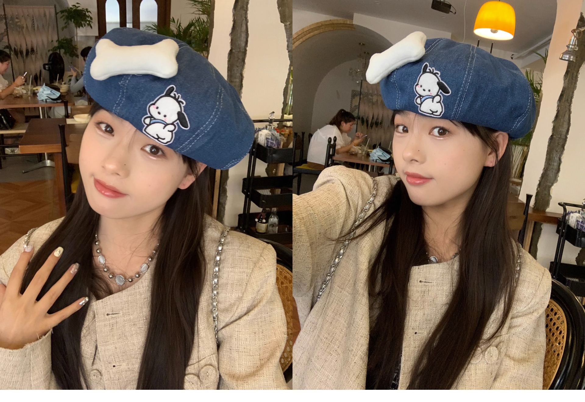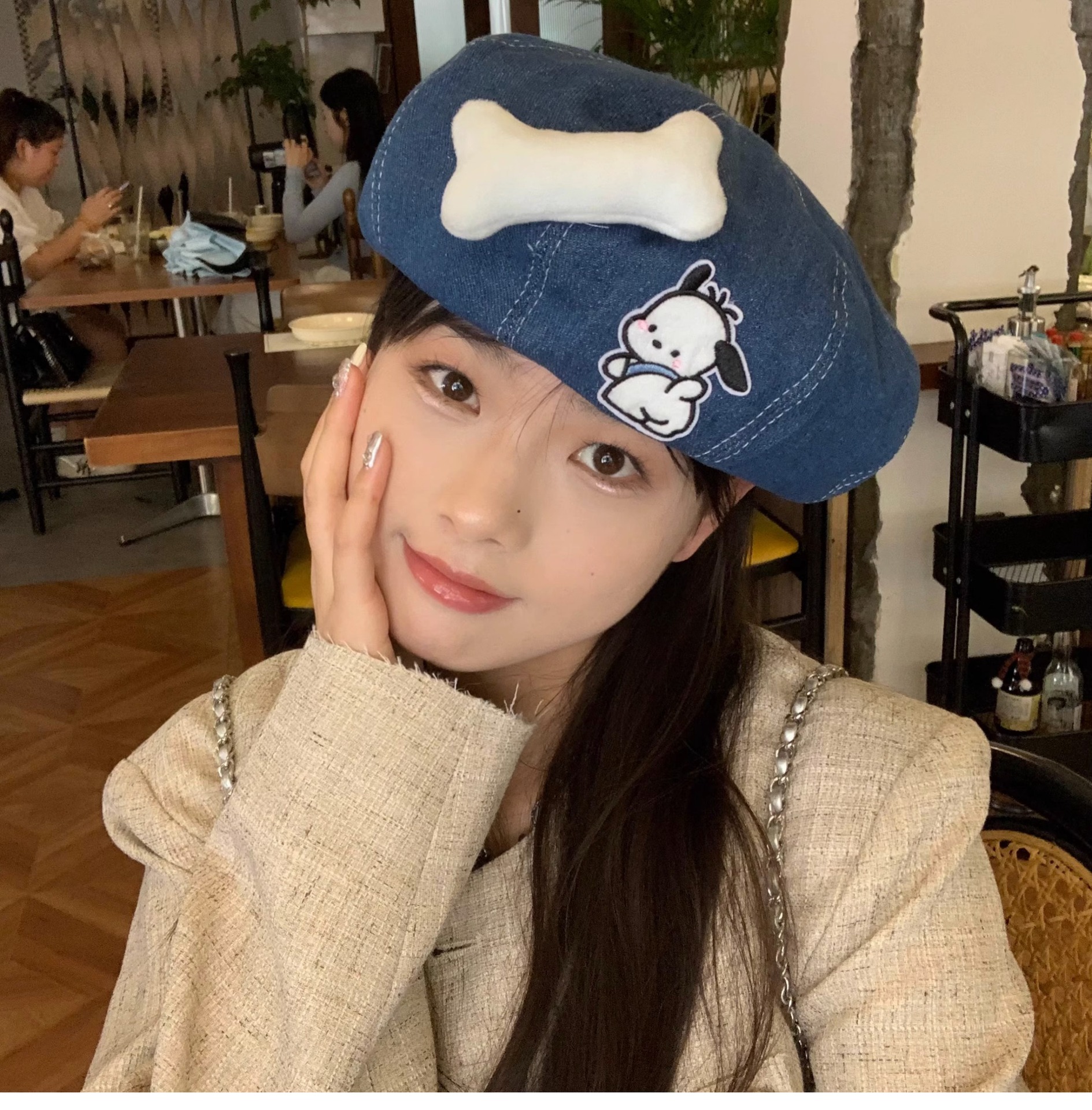 새로운 귀여운 강아지 데님 베레 어린이 봄과 여름 만화 팔각형 모자 캐주얼 올 매치 베이 레이 화가 캡스토어 가기