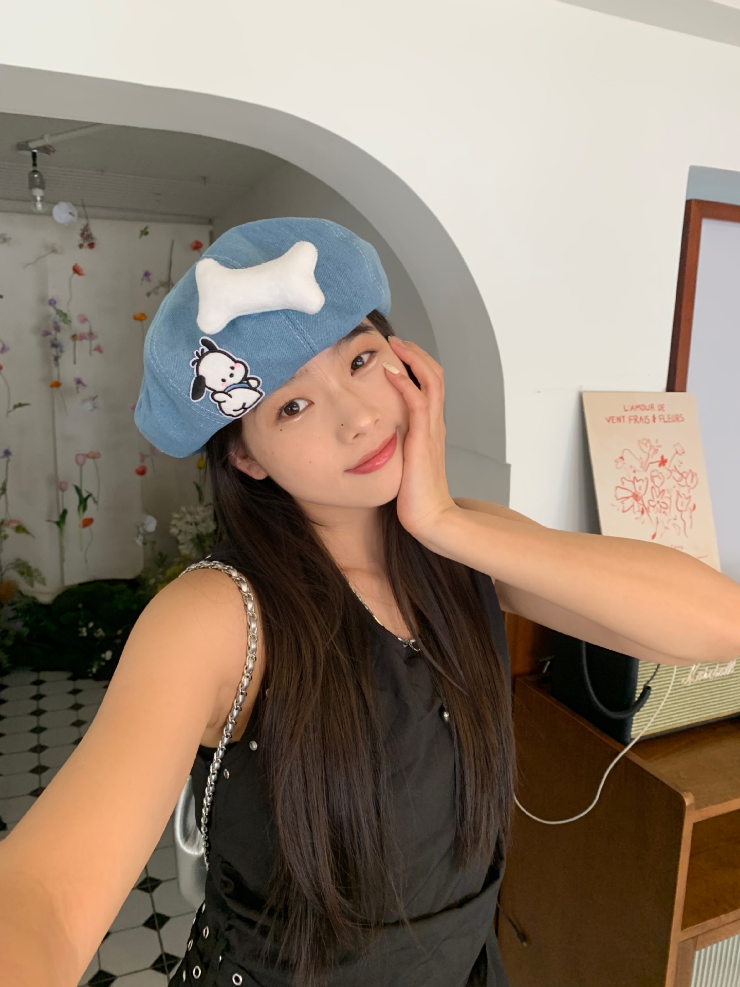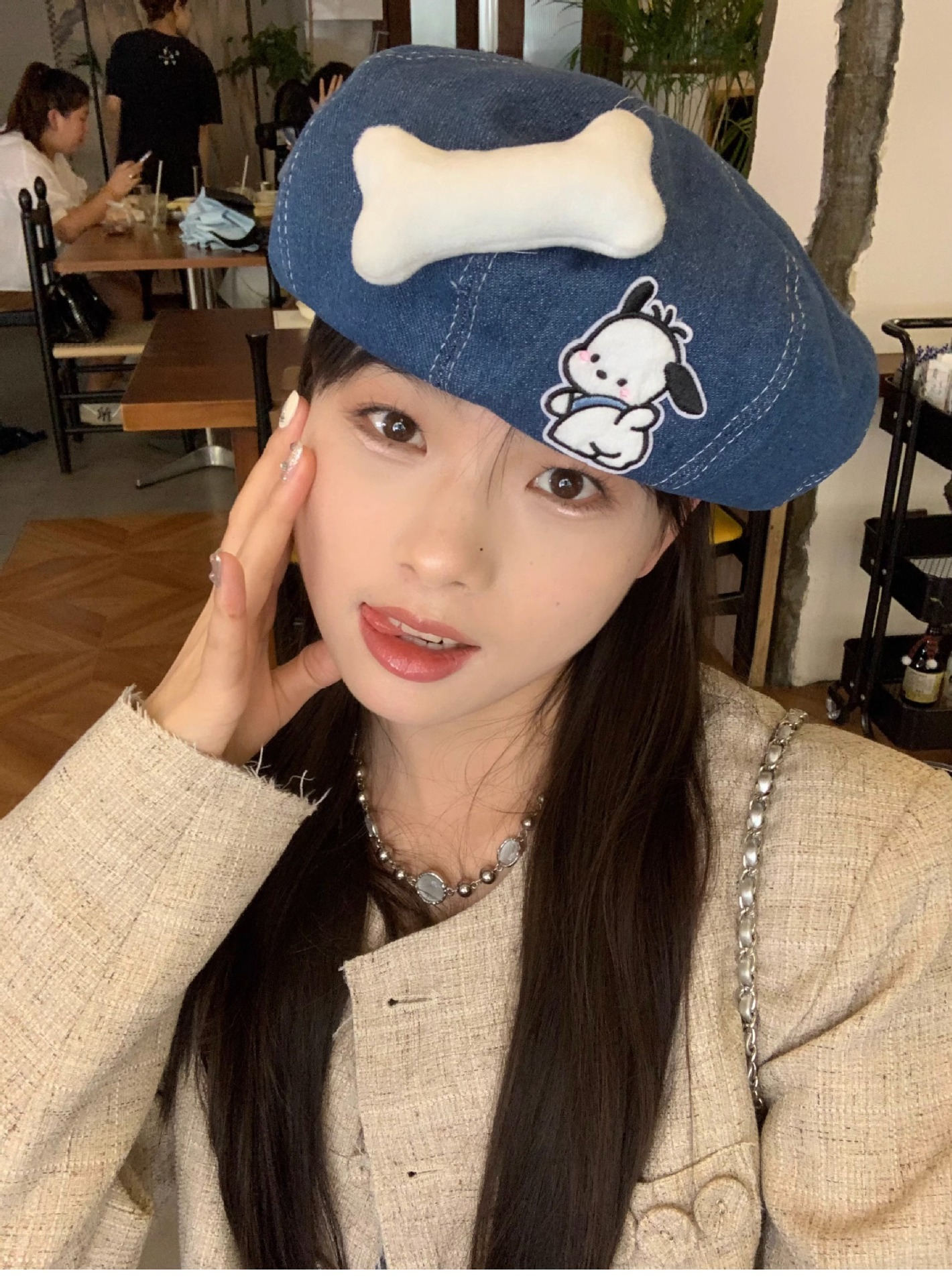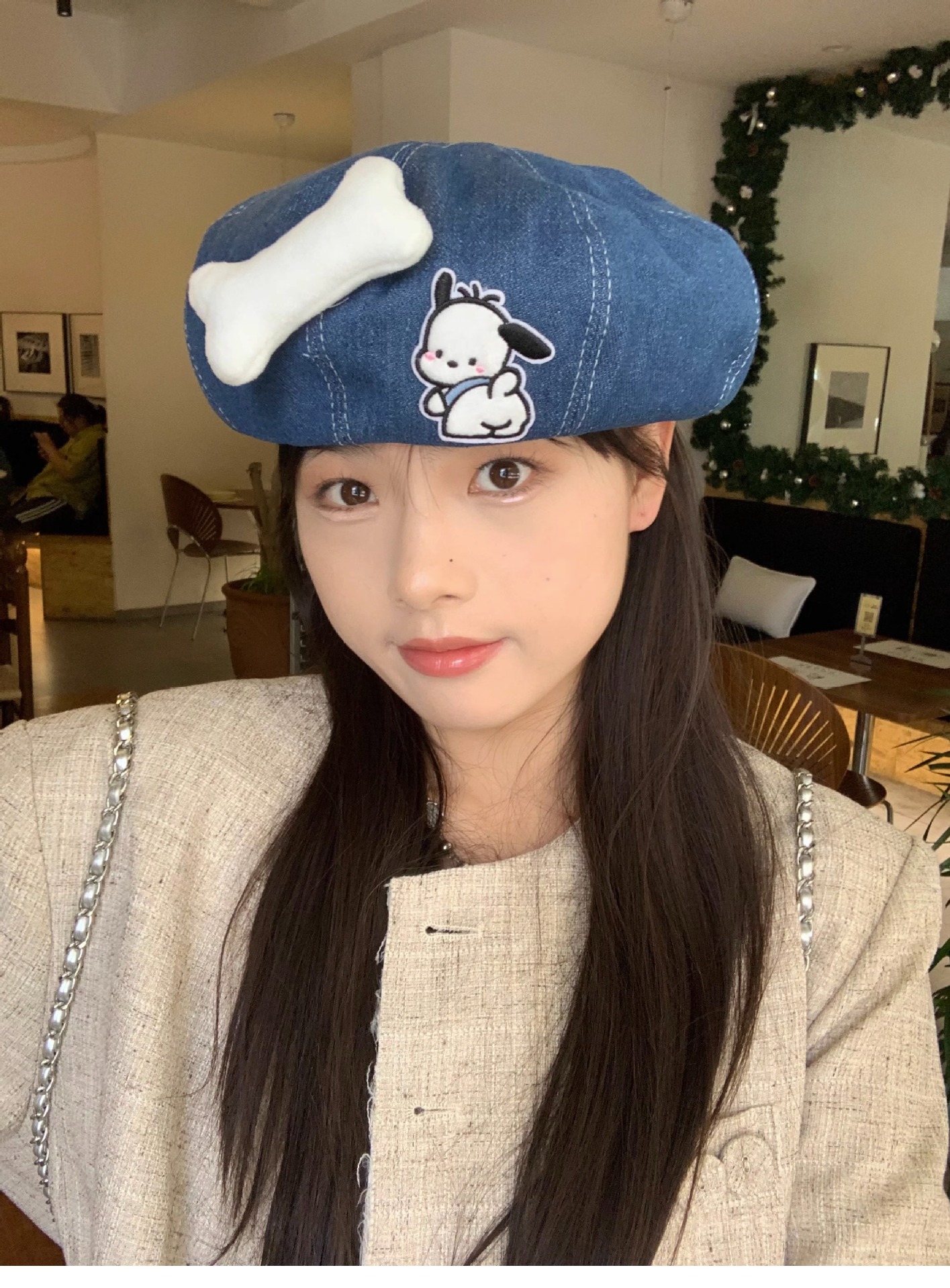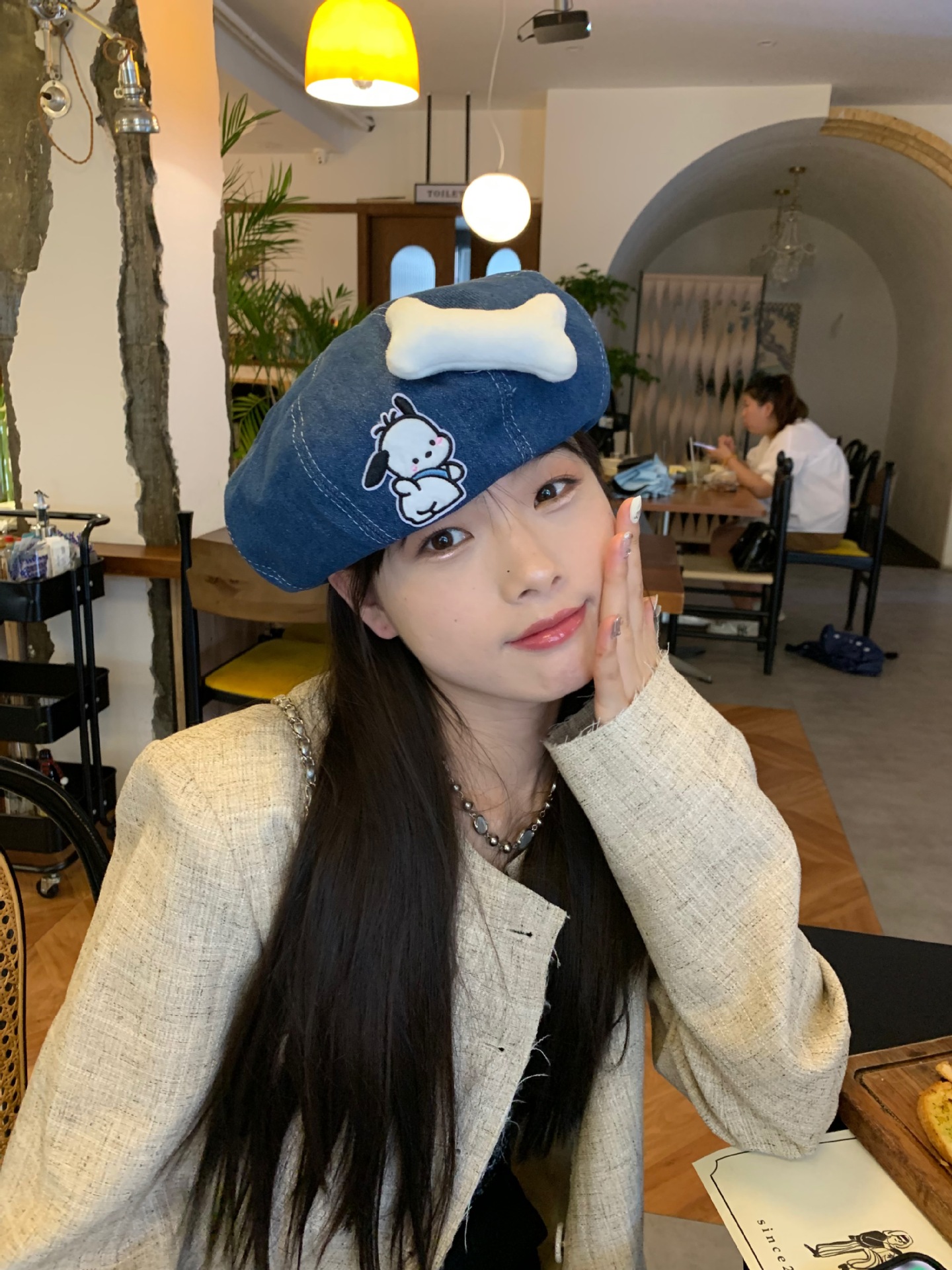 새로운 귀여운 강아지 데님 베레 어린이 봄과 여름 만화 팔각형 모자 캐주얼 올 매치 베이 레이 화가 캡스토어 가기