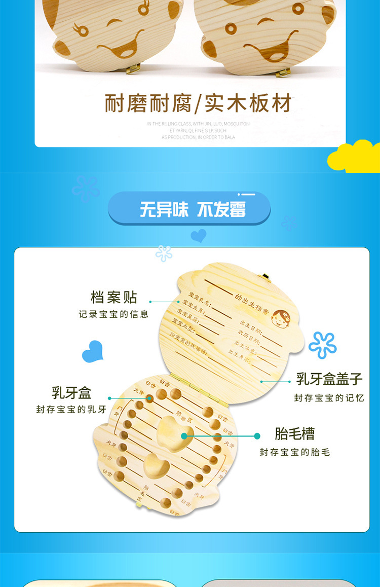 어린이 치아 상자 치아 저장 상자 태아 모발 제대 수집 상자 유아 치아 저장 상자 나무 기념 상자
