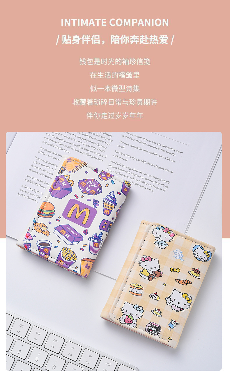새로운 귀여운 만화 인쇄 동전 지갑 다기능 변경 ID 투인원 지갑 대외 무역 70% off 카드 홀더
