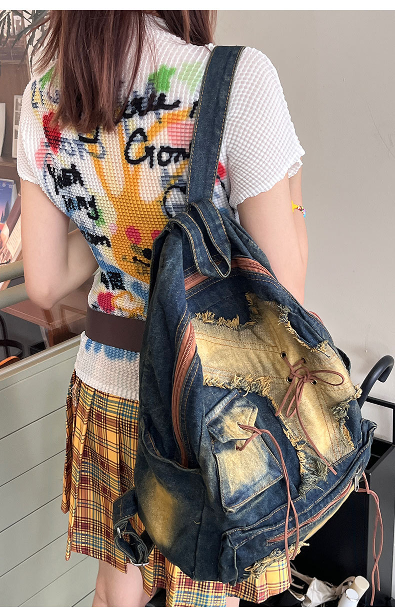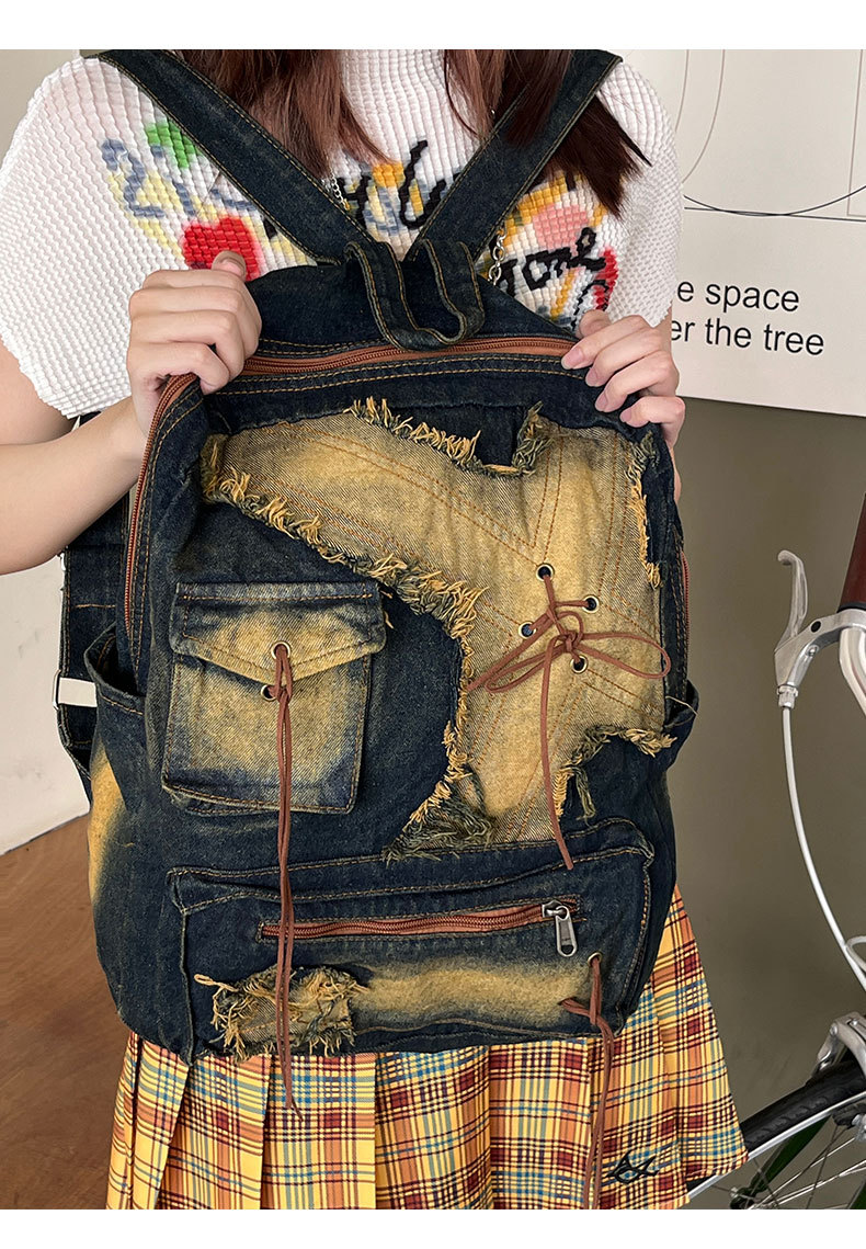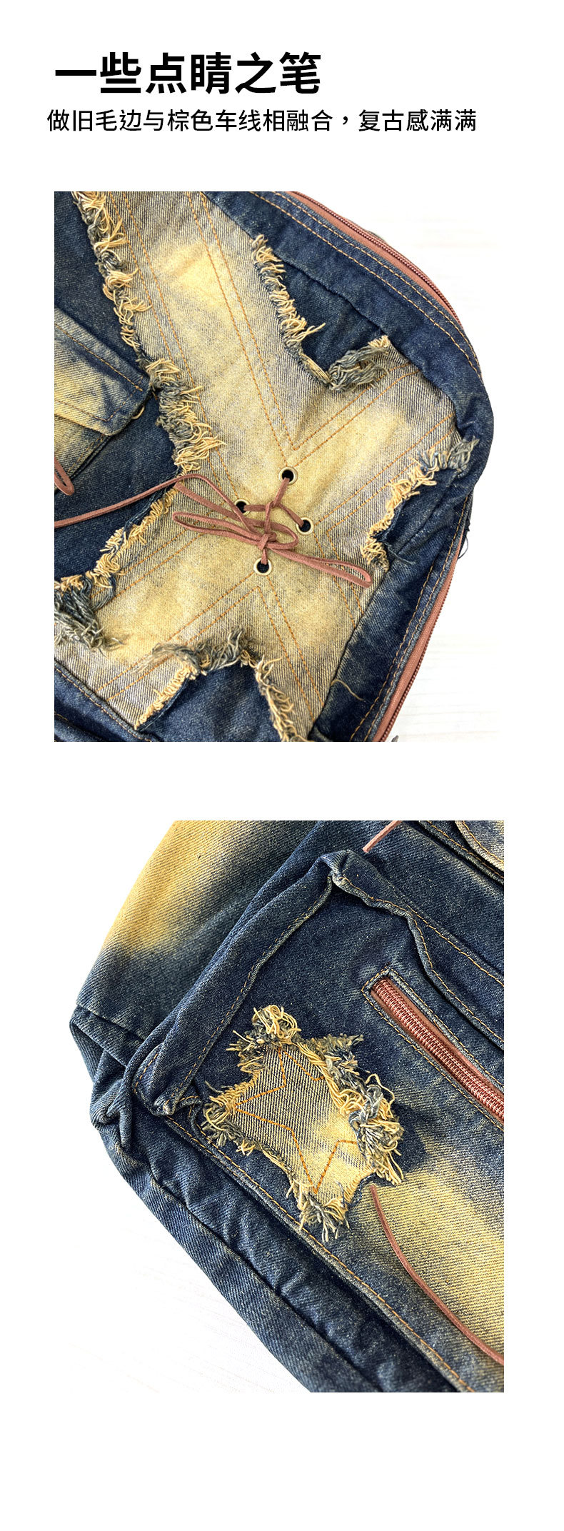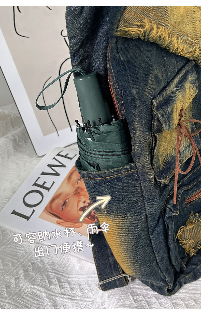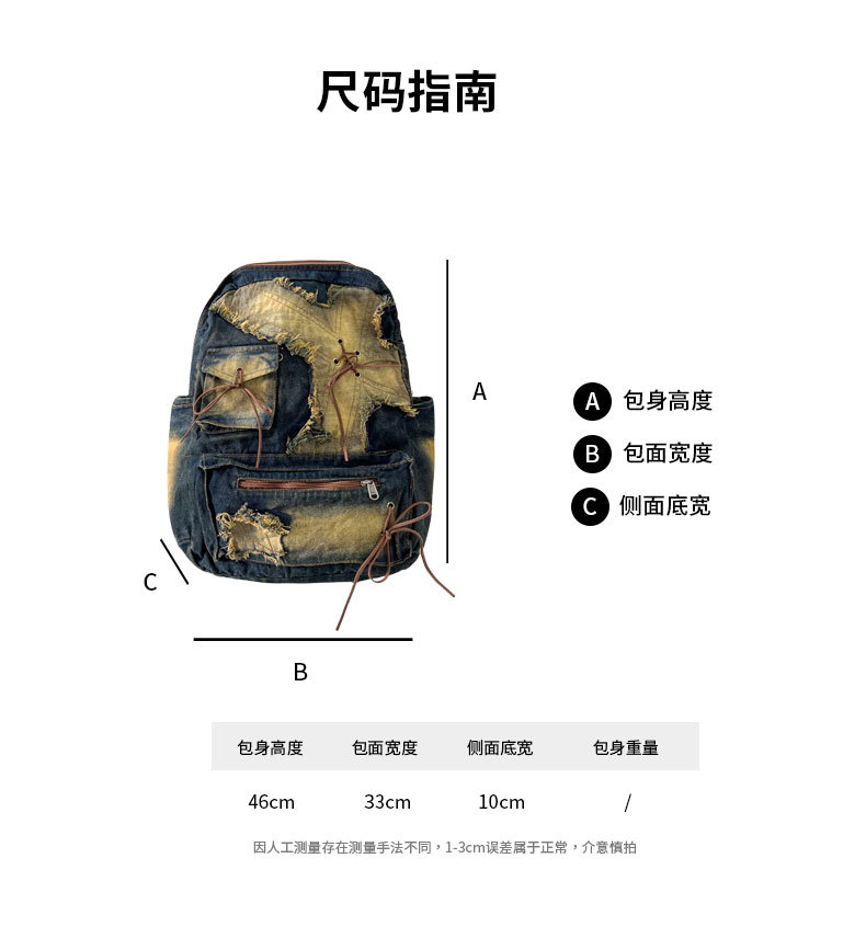 Enil 데님 배낭 학생 통근 Schoolbag 2024 대용량 데님 배낭 용 국경 간 전자 상거래스토어 가기