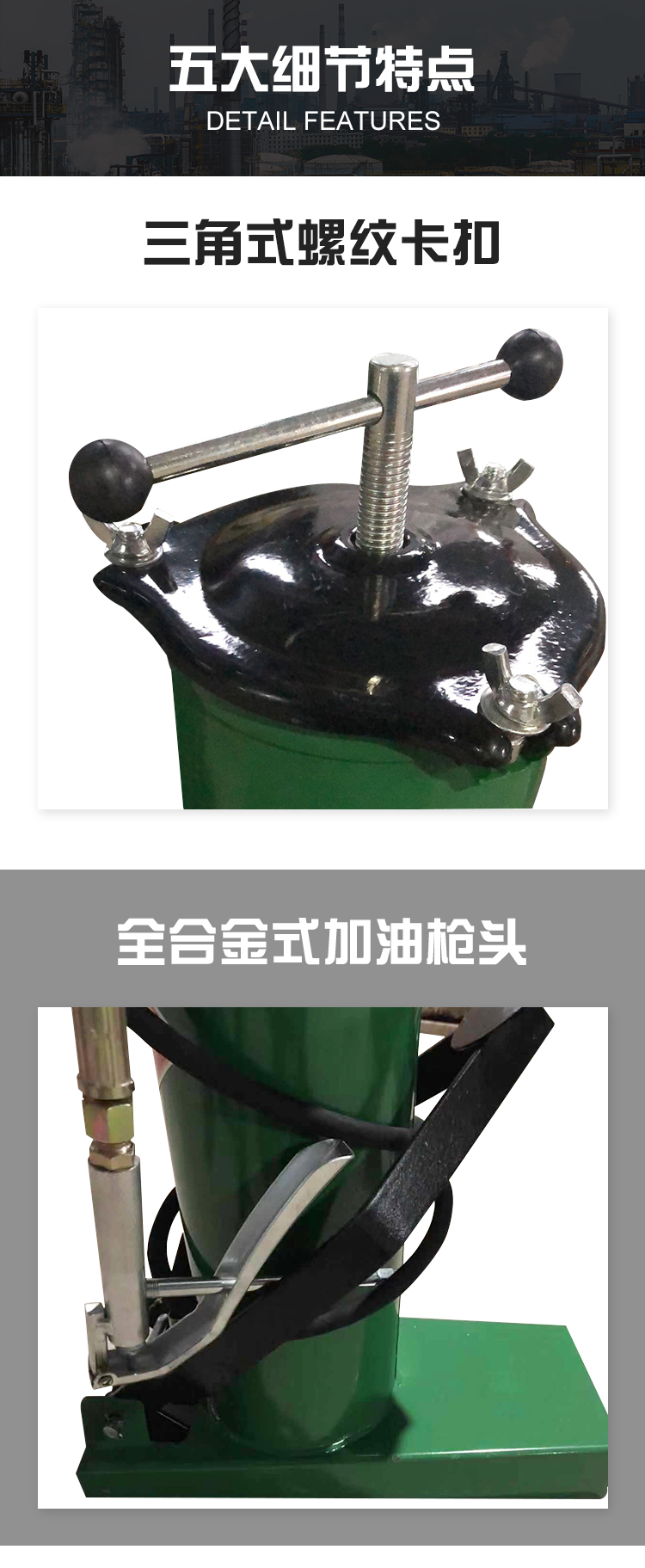 • 10L 오일 인젝터 + 2m 강철 와이어 파이프 + 헤비 듀티 범용 건 + 휠 + 난간