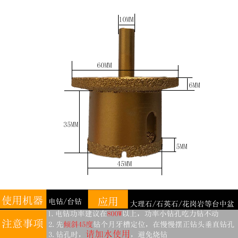 다이아몬드 이중층 구멍 오프너 테이블 분지 시추 하수관 싱크 대리석 돌 세라믹 드릴링 세면기 시추 비트스토어 가기