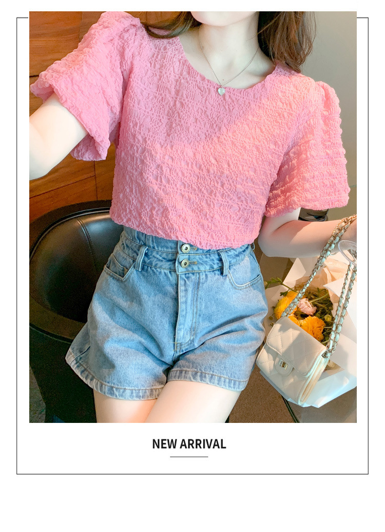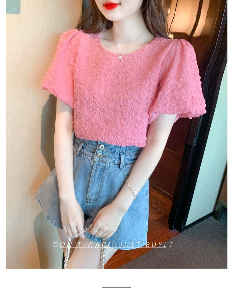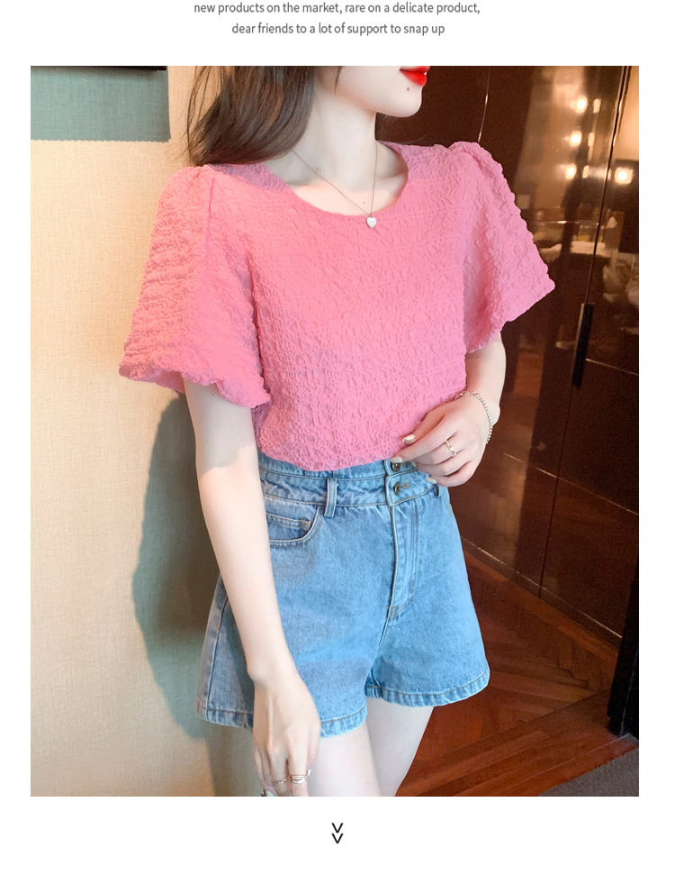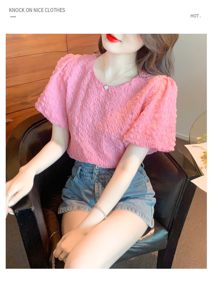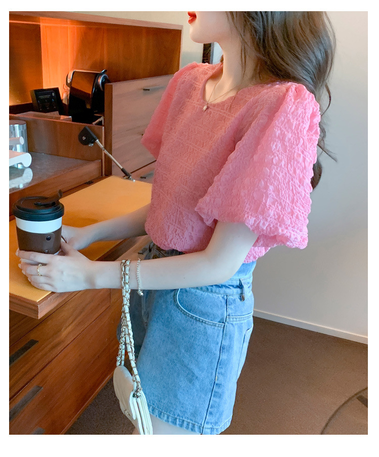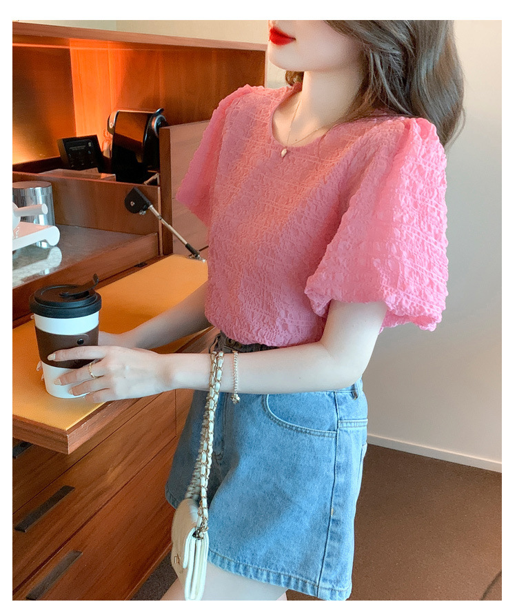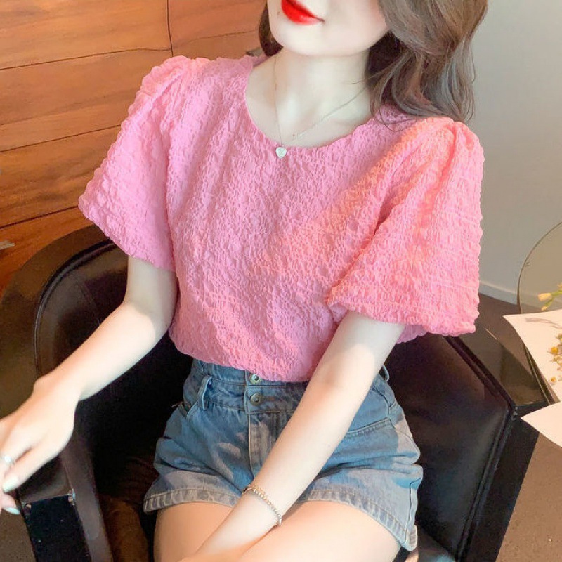 여름 새로운 프랑스 요정 우아한 쉬폰 셔츠 올 매치 패션 퍼프 소매 짧은 소매 샤넬 스타일 최고 여성의 작은 셔츠스토어 가기