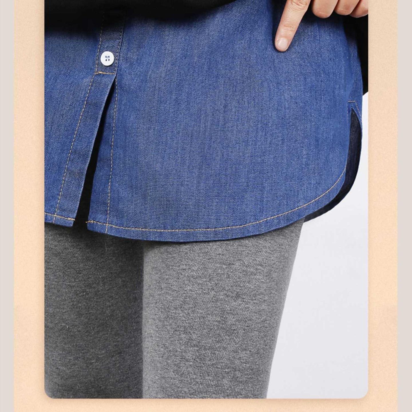 가을 및 겨울 작은 방귀 커튼 다목적 스웨터 쌓을 수있는 가짜 밑단 데님 파란색 치마 셔츠 바닥 안감 엉덩이스토어 가기