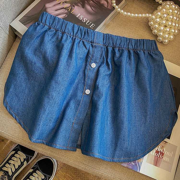 가을 및 겨울 작은 방귀 커튼 다목적 스웨터 쌓을 수있는 가짜 밑단 데님 파란색 치마 셔츠 바닥 안감 엉덩이