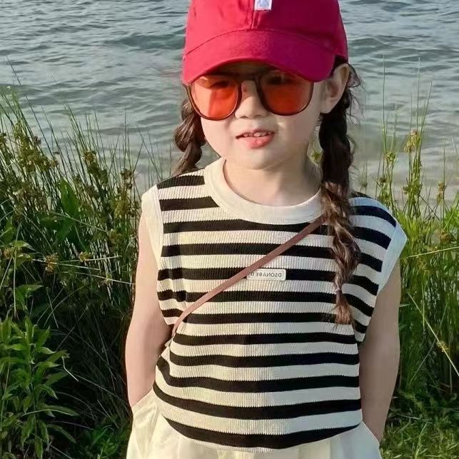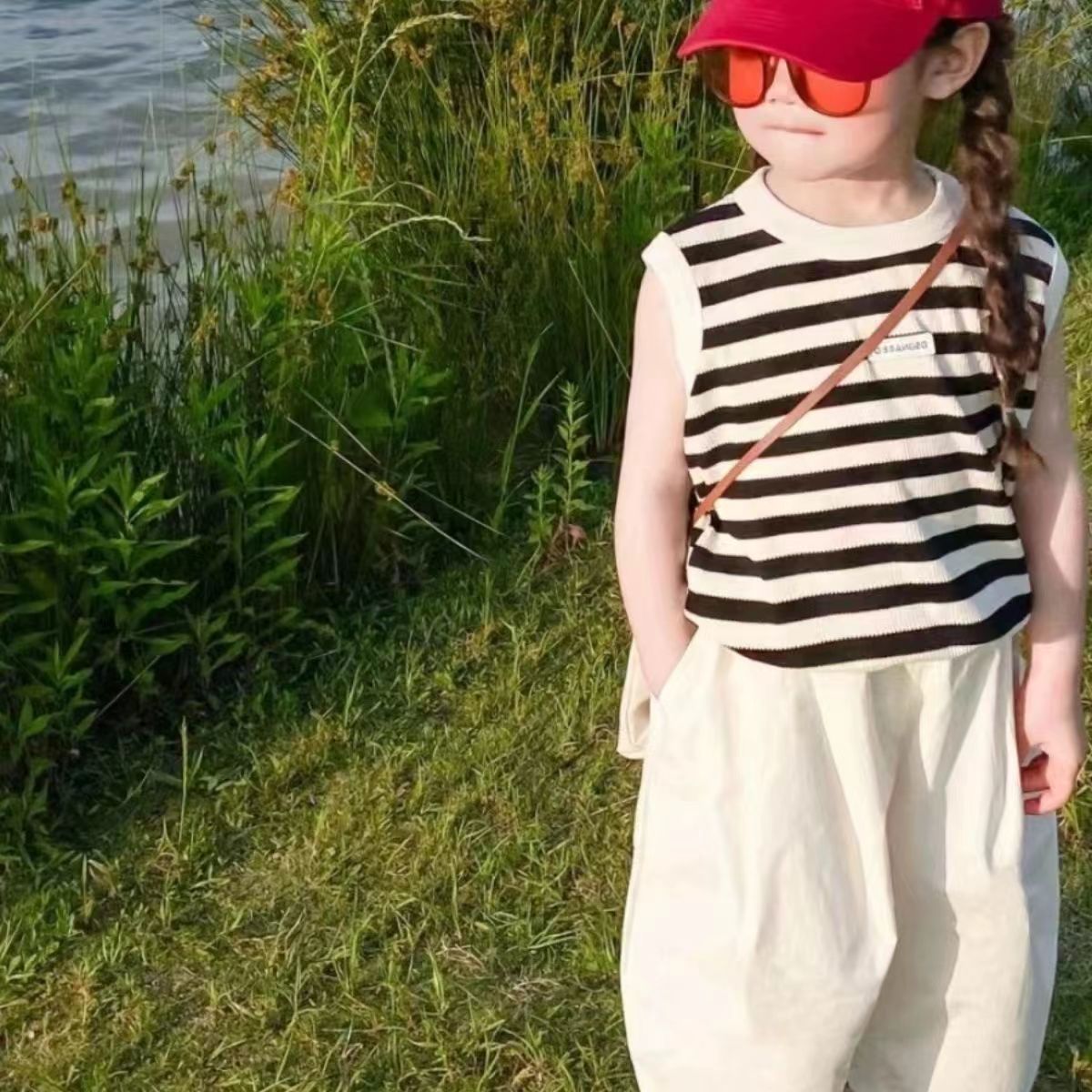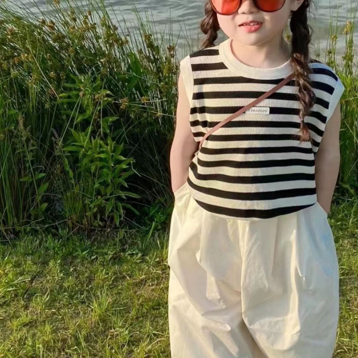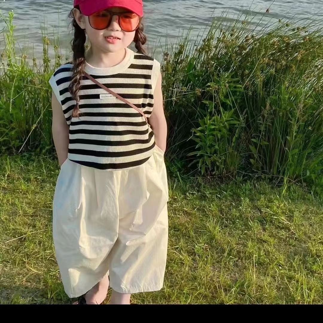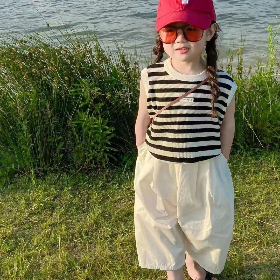 2025 여름 신상 여아 스트라이프 캐주얼 세트 아기 스타일리시 스트라이프 티셔츠 긴바지 투피스 세트 면 소재 부드러움스토어 가기