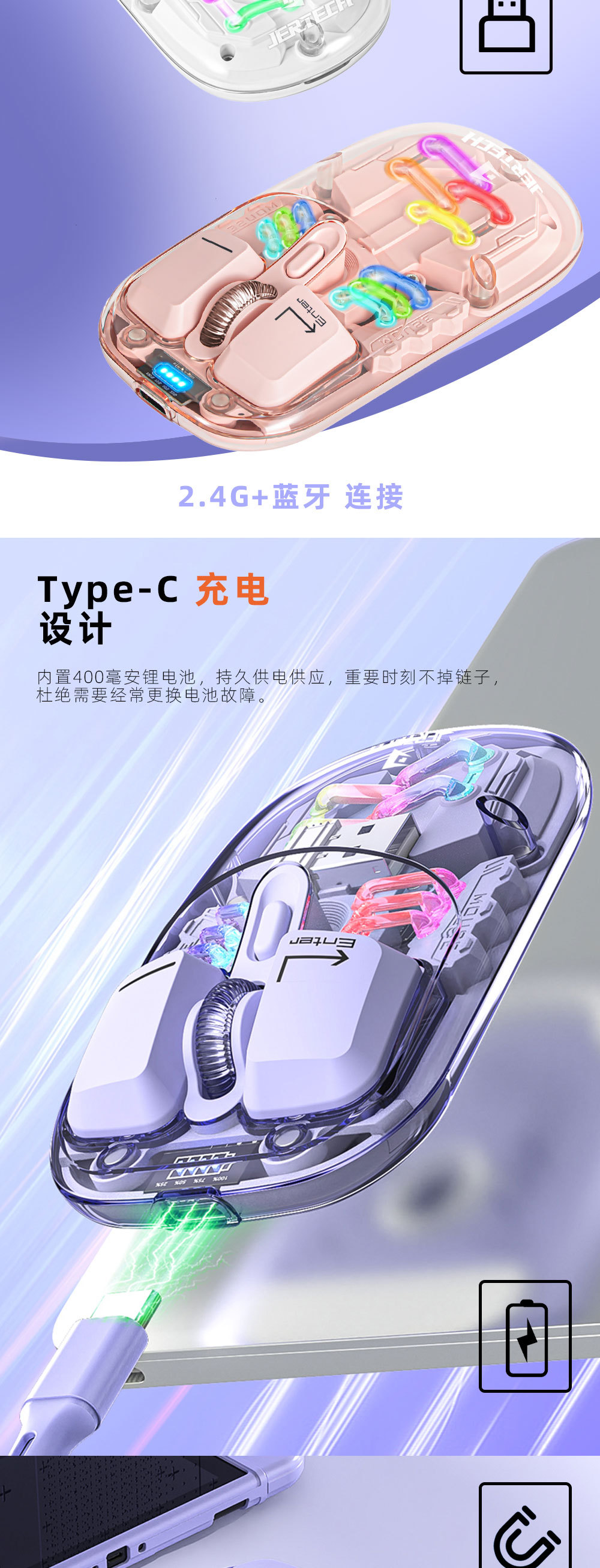 무선 블루투스 투명 마우스 자기 흡입 듀얼 모드 충전 타입 C 여자 사무실 RGB 빛나는 크로스 보더 새로운