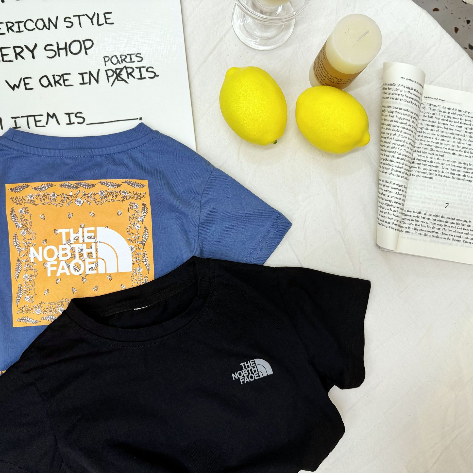 여름 새로운 어린이 반팔 티셔츠 소년 소녀 앞과 뒤로 인쇄 반소매 최고 아기의 캐슈 플라워 코튼 티셔츠