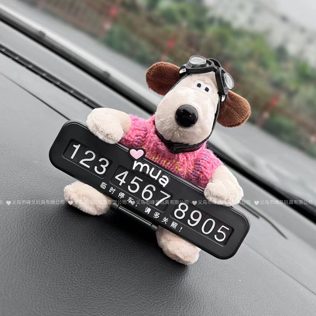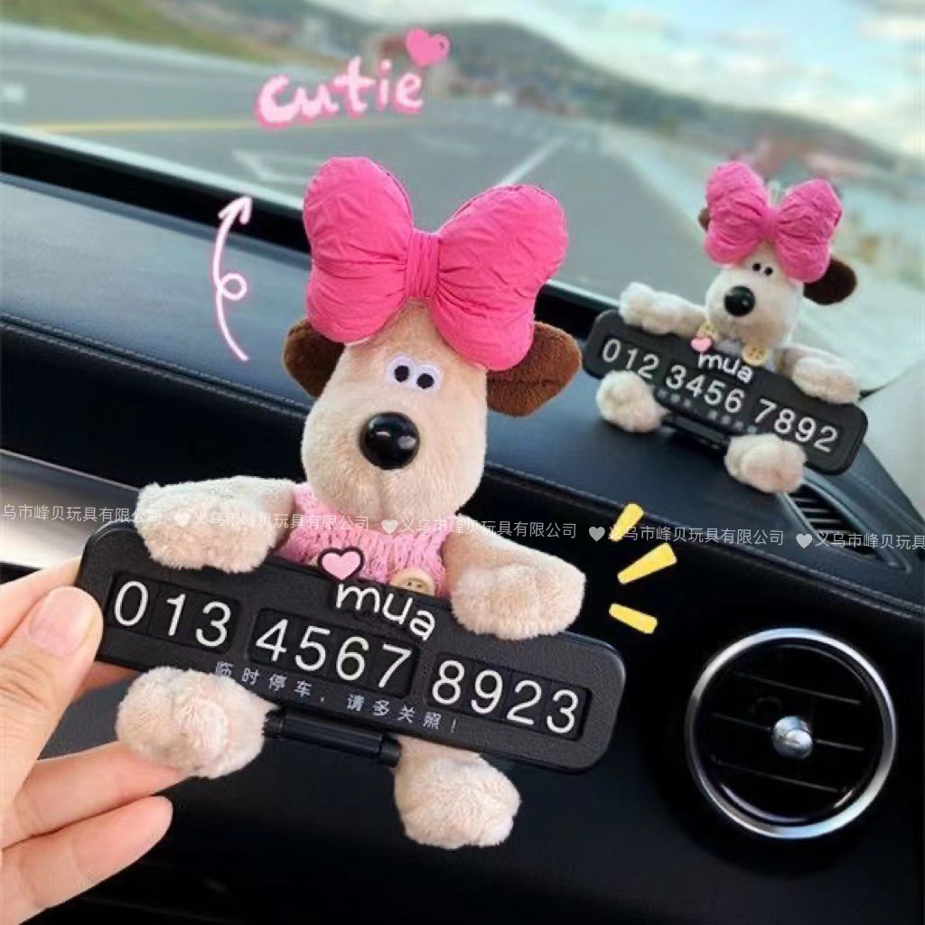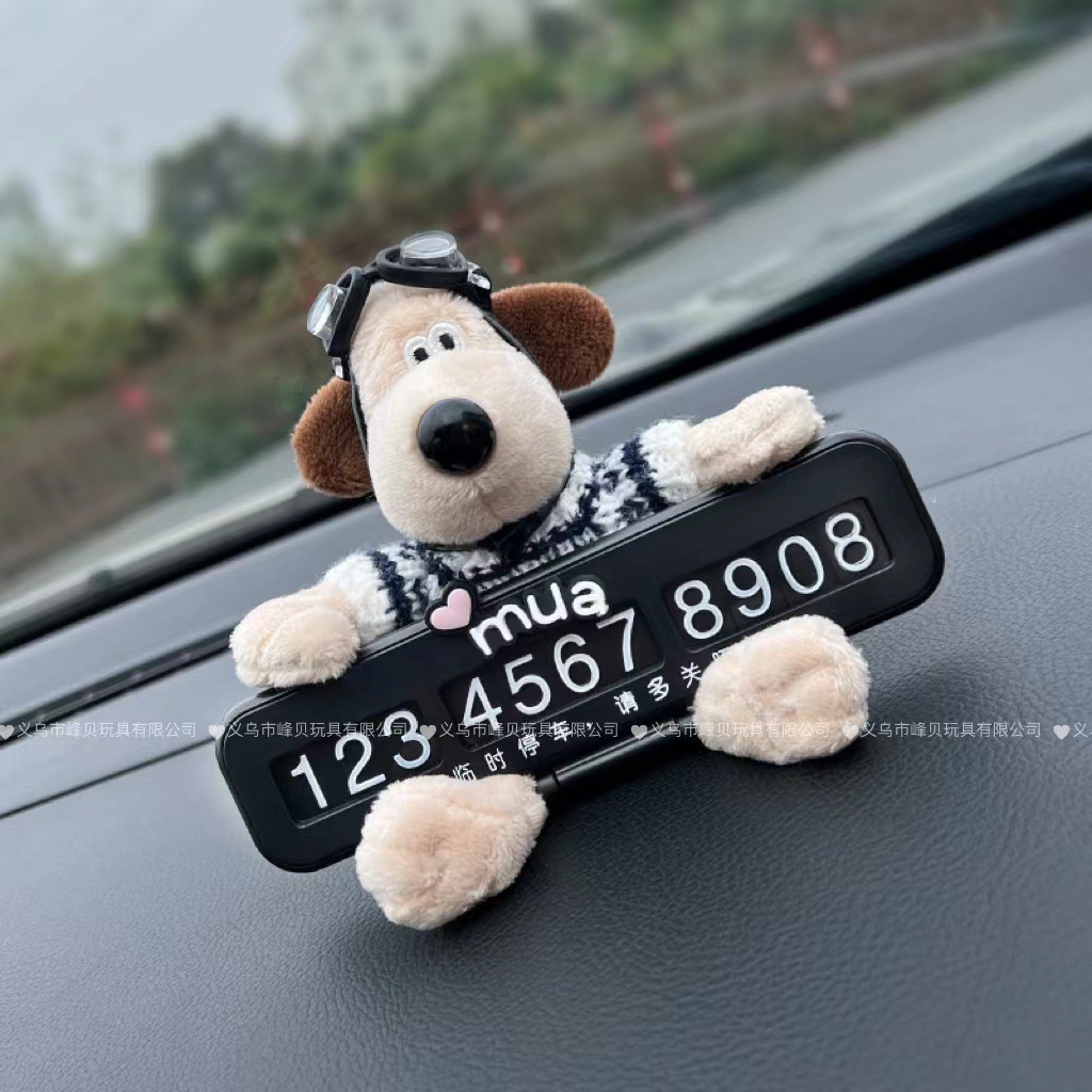 핸드독 자동차 주차 번호 플레이트 귀여운 소녀 봉제 장난감 인형 자동차 주차 플레이트 스테레오 핸드독