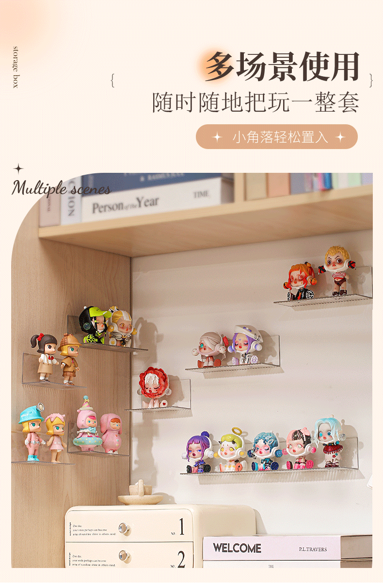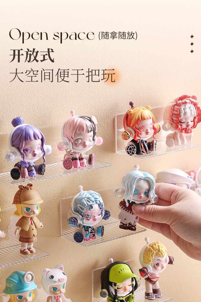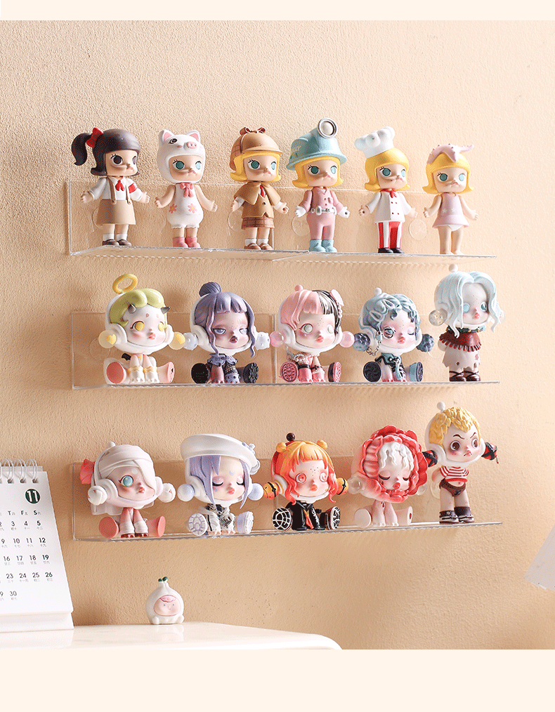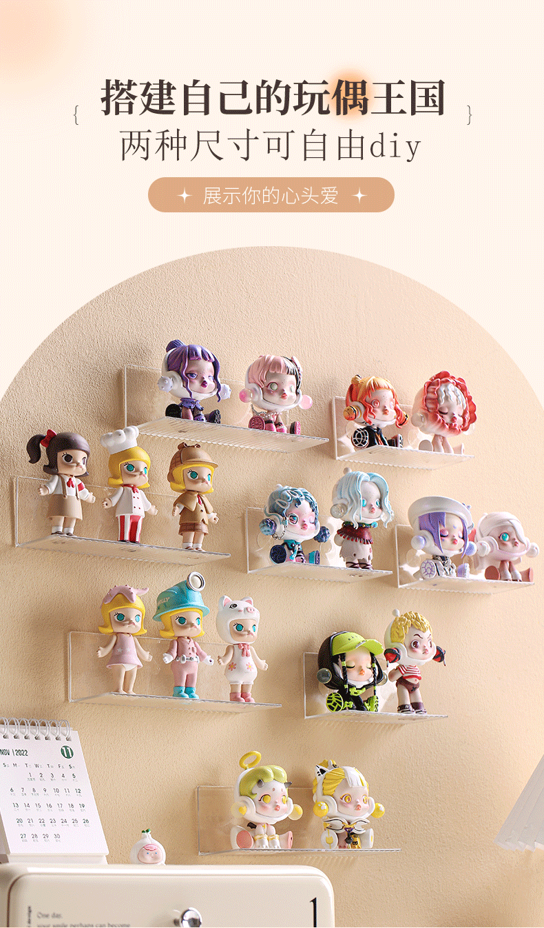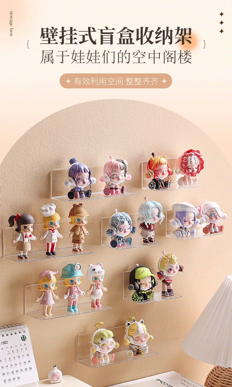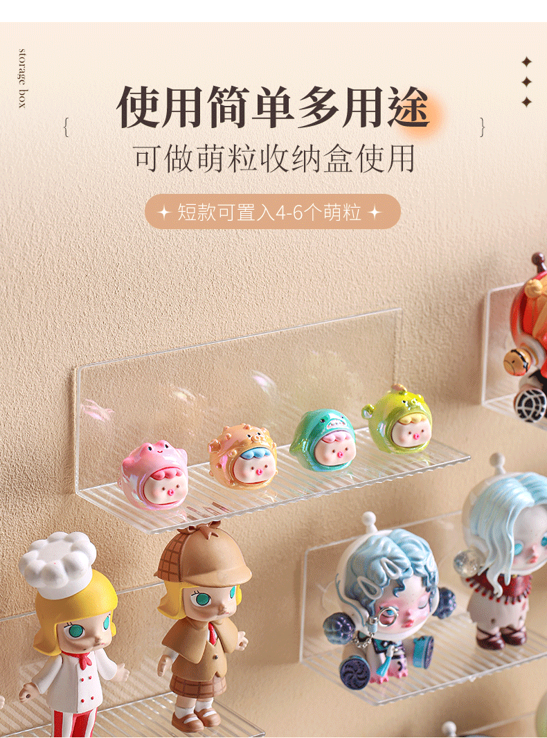 벽 매달린 블라인드 박스 저장 다기능 아크릴 펀치없는 인형 손 저장 상자 투명한 작은 장식품 디스플레이 랙