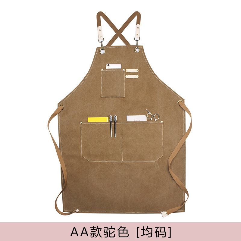 크로스보더 아마존 크로스보더 캔버스 앞치마 고급 미용사 레스토랑 커피숍 작업복 앞치마 맞춤 로고스토어 가기